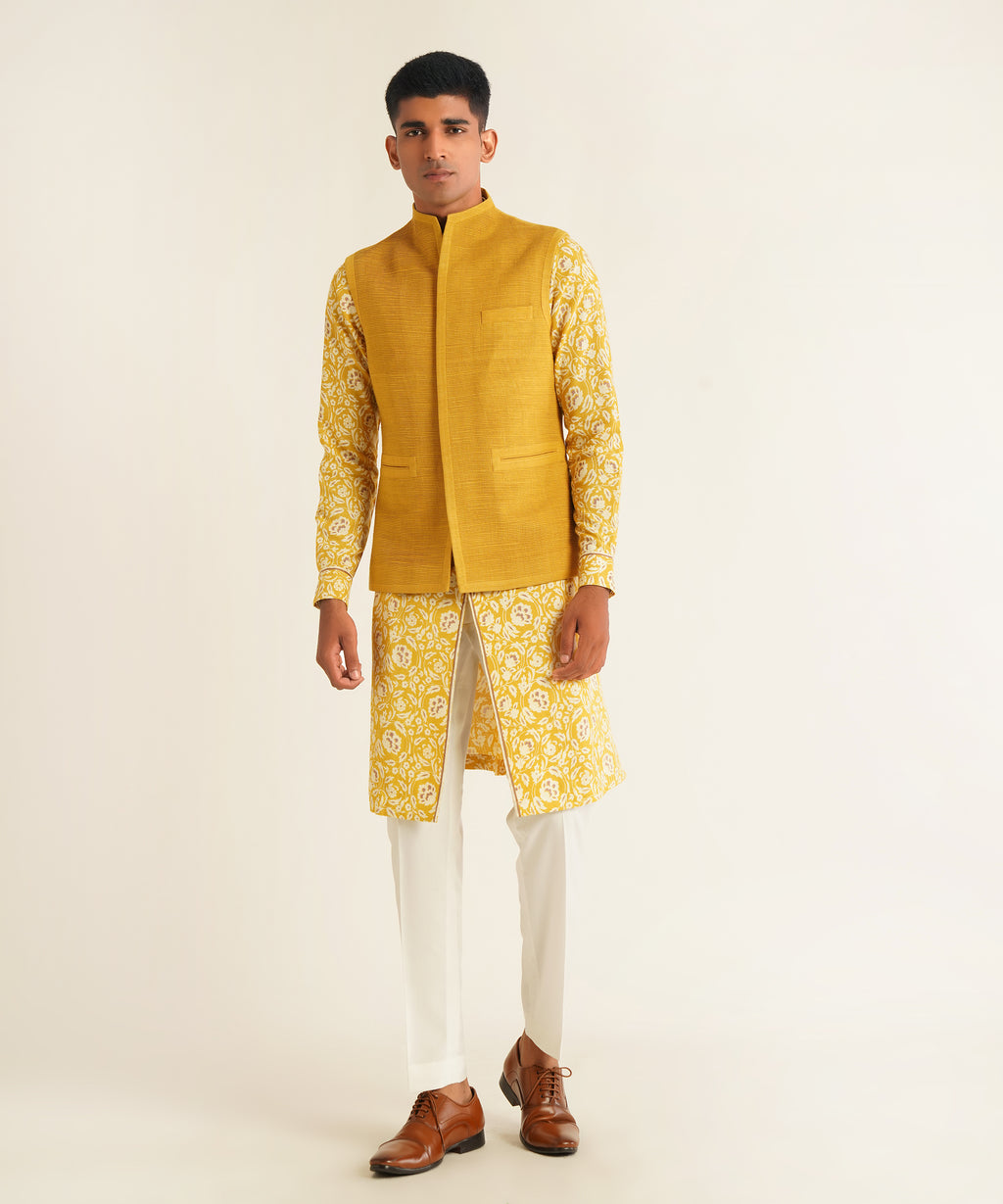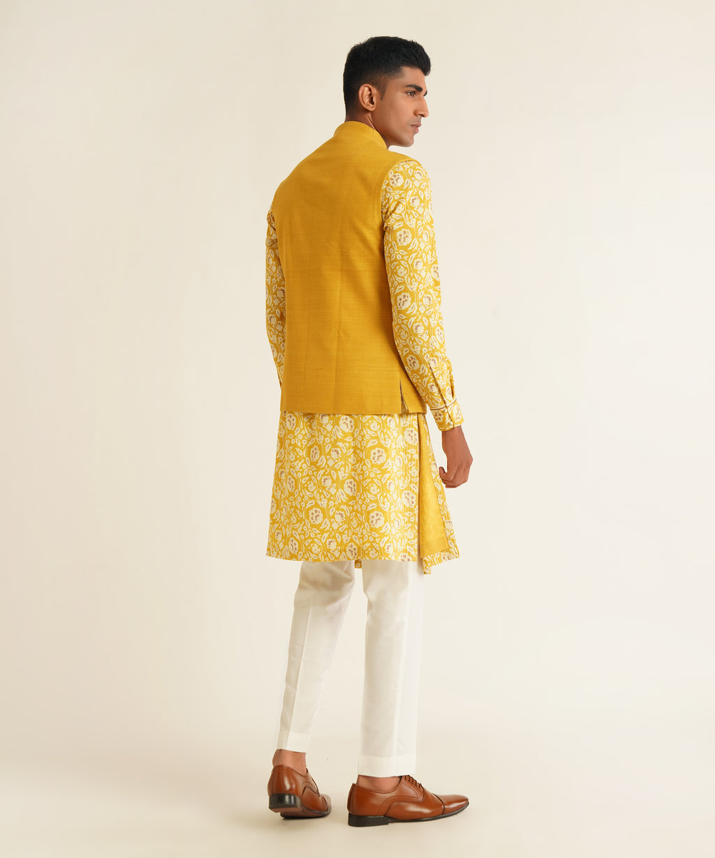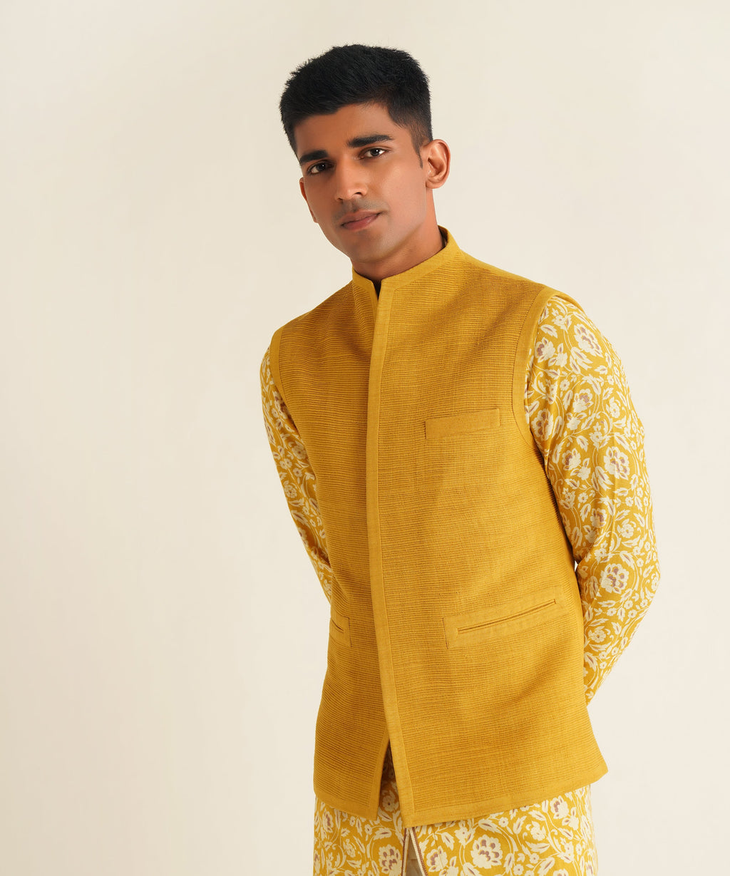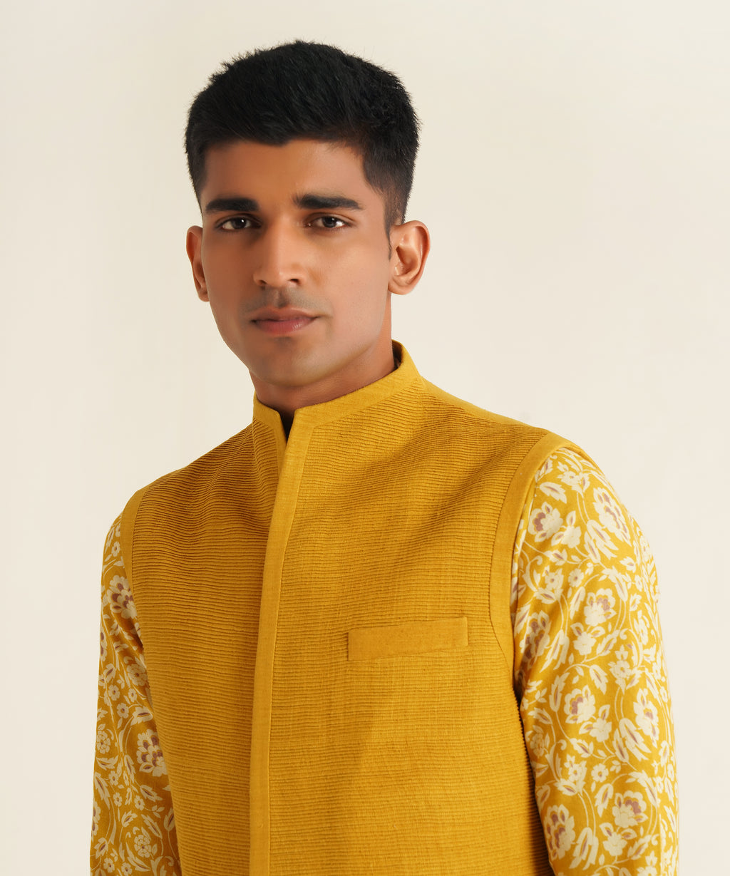 Silk High Neck Jawahar Jacket With Pintuck Detailing