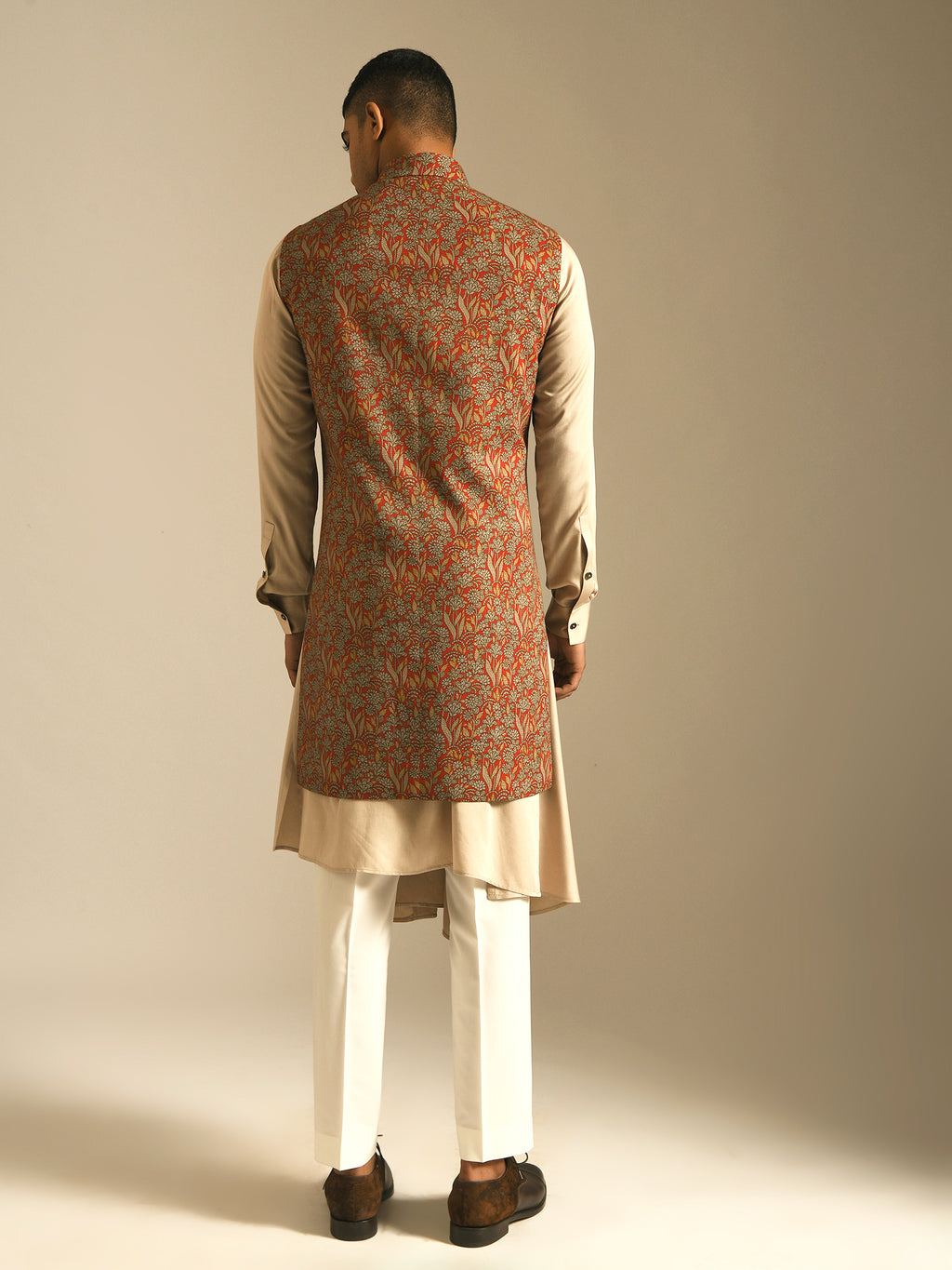 A very elegant and versatile Berry Chrome Printed Long Jawahar Jacket in Textured Cotton Silk making it perfect for any Formal or semi-formal functions.