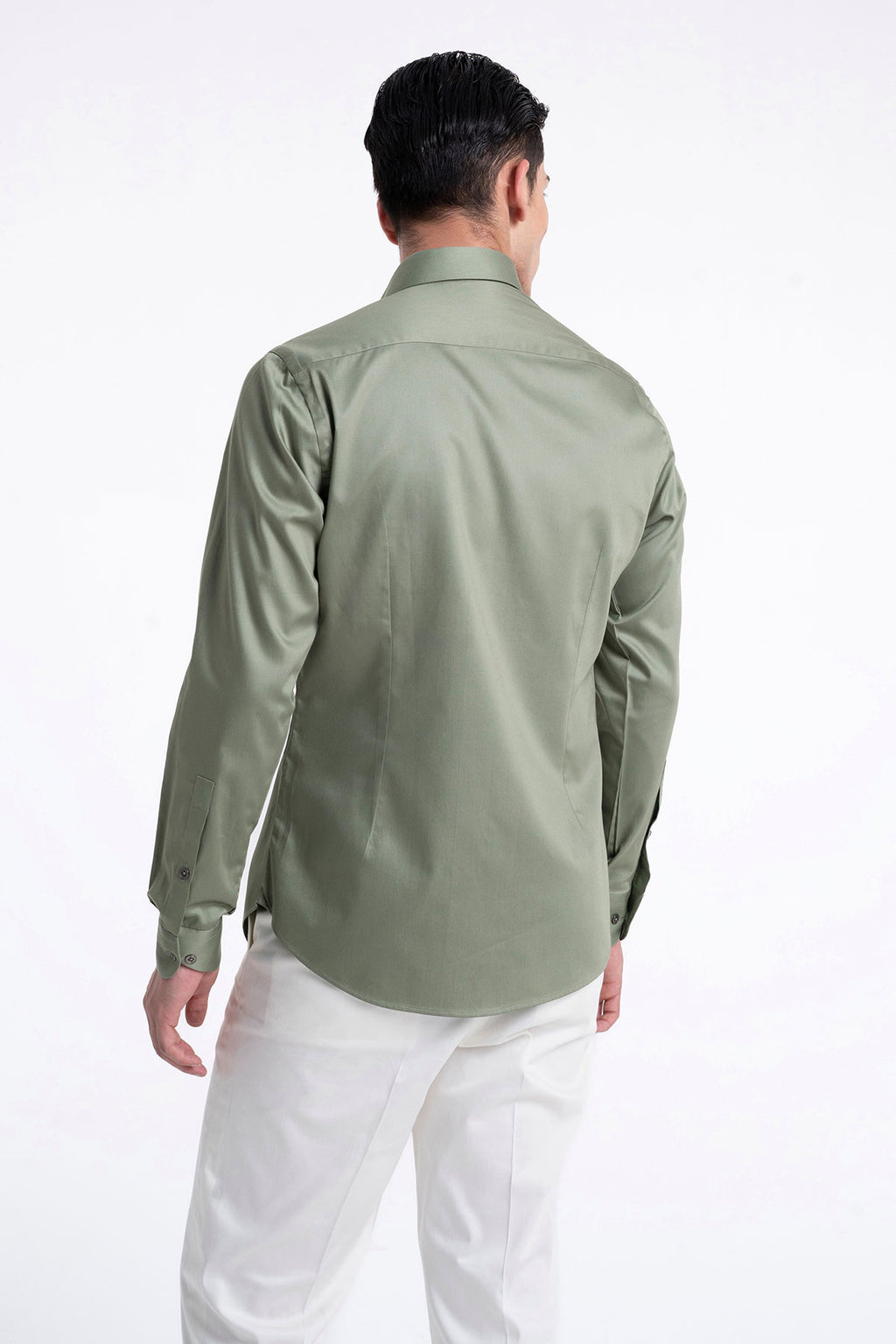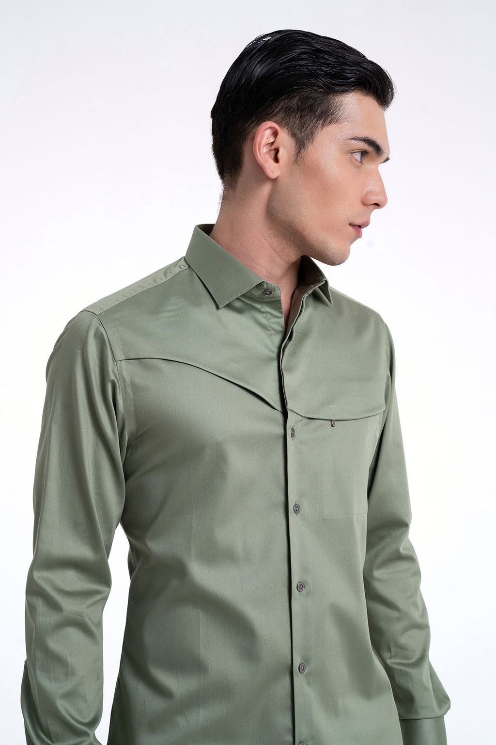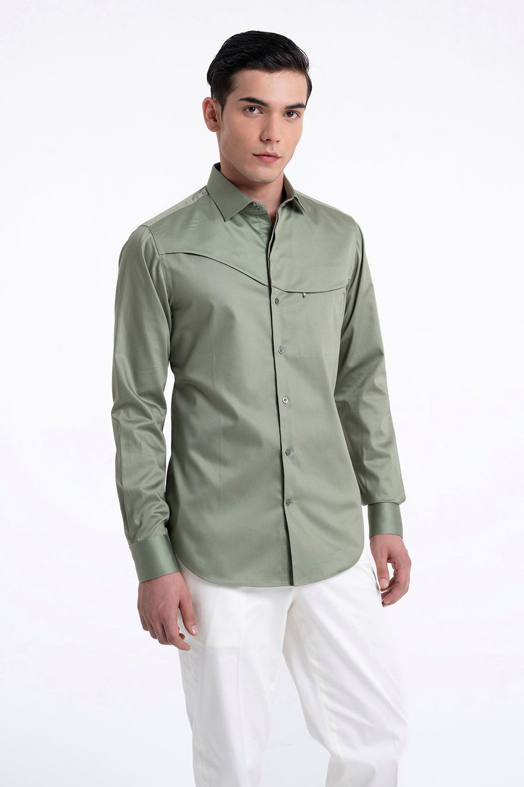 Smart Cotton-Satin Shirt Featuring Fine Curve Detailing With Zipper Chest Pocket And A Tailored Fit, Perfect For Versatile, Polished Looks.