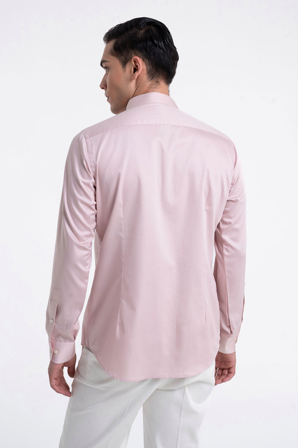 Elegant Cotton Satin Shirt With A Curved Panel On One Side And Patch Pocket With Minimal Detail On The Other Prefect For A Statement Look.