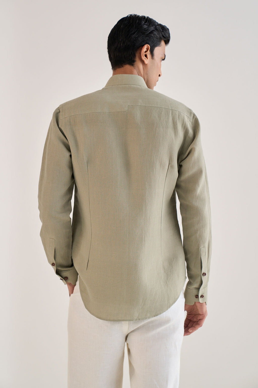 Classic Shirt Made In Handloom Cotton Linen With A Minimal Curved Placket Detail And Mandarin Collar Perfect For An Effortless Look.