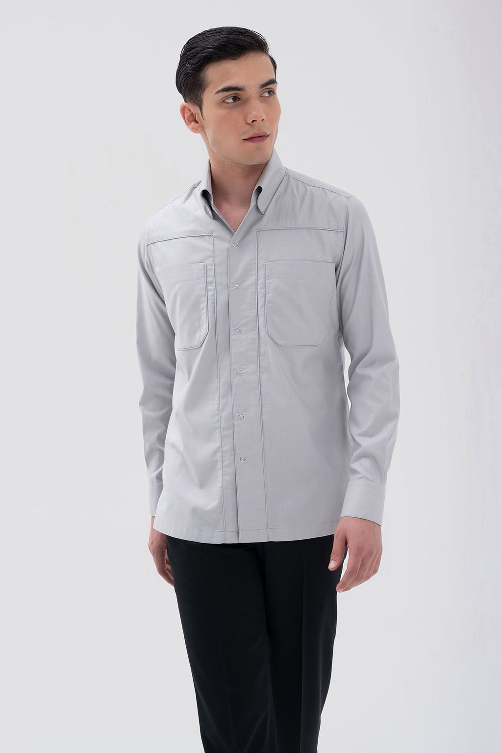 Smart Cotton Satin Shirt Featuring Double Chest Pockets And Piping Details For A Modern Vibe.