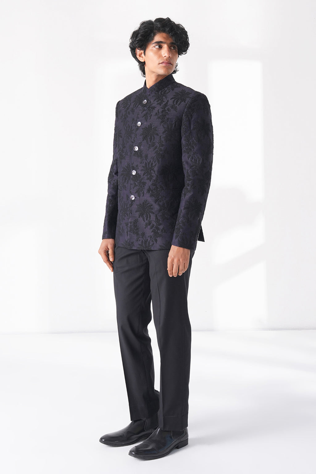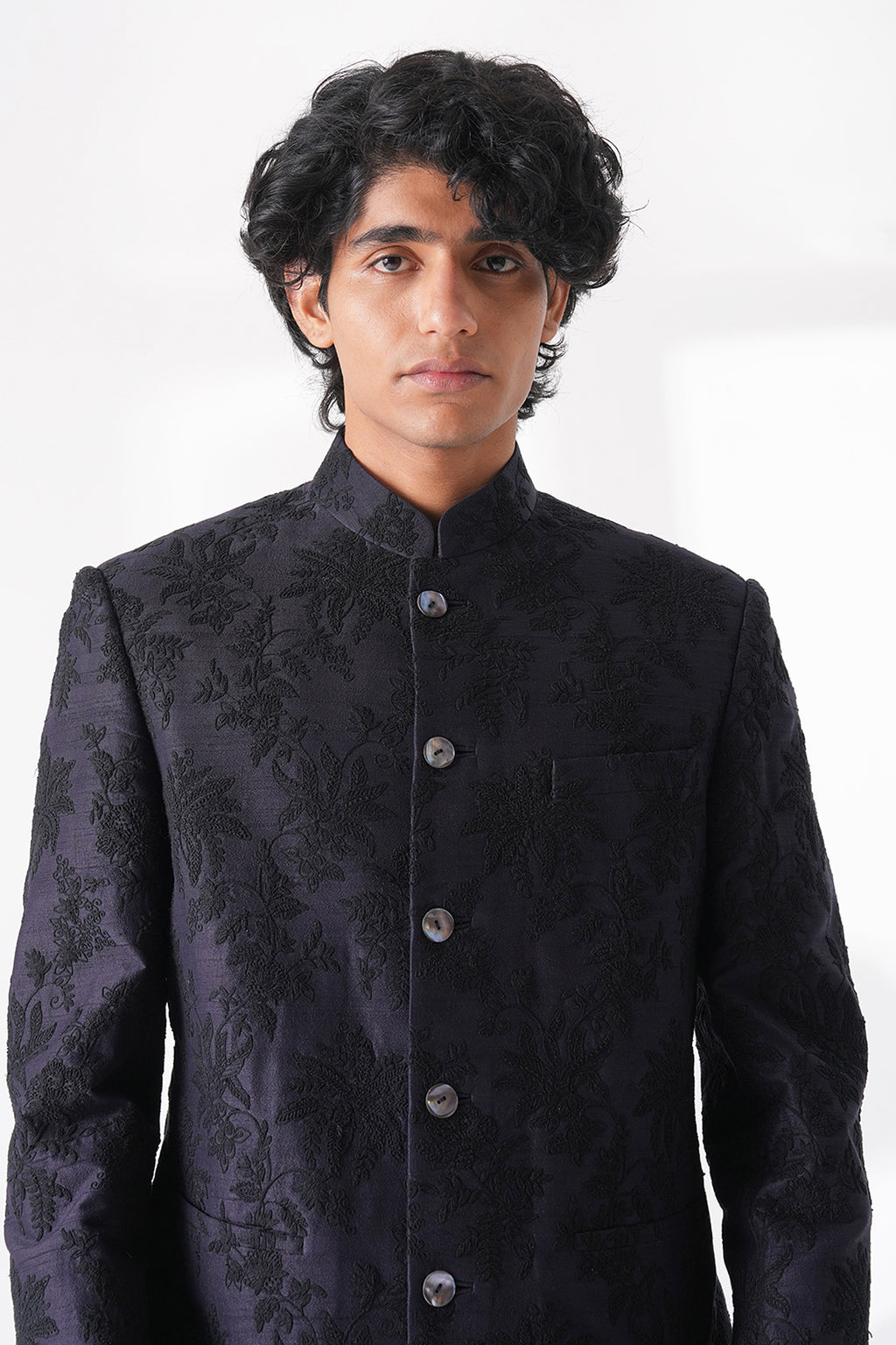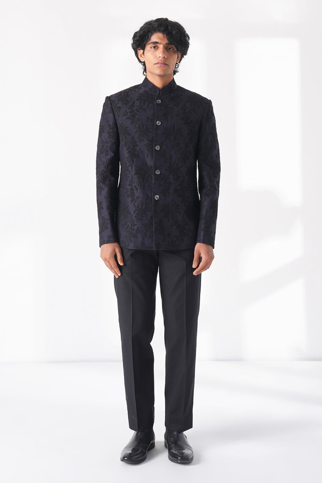 Classic cut silk bandgala with a complementary thread embroidery making it a perfect balance of traditional craftsmanship and contemporary appeal.It can be paired with classic Cotton Trouser.