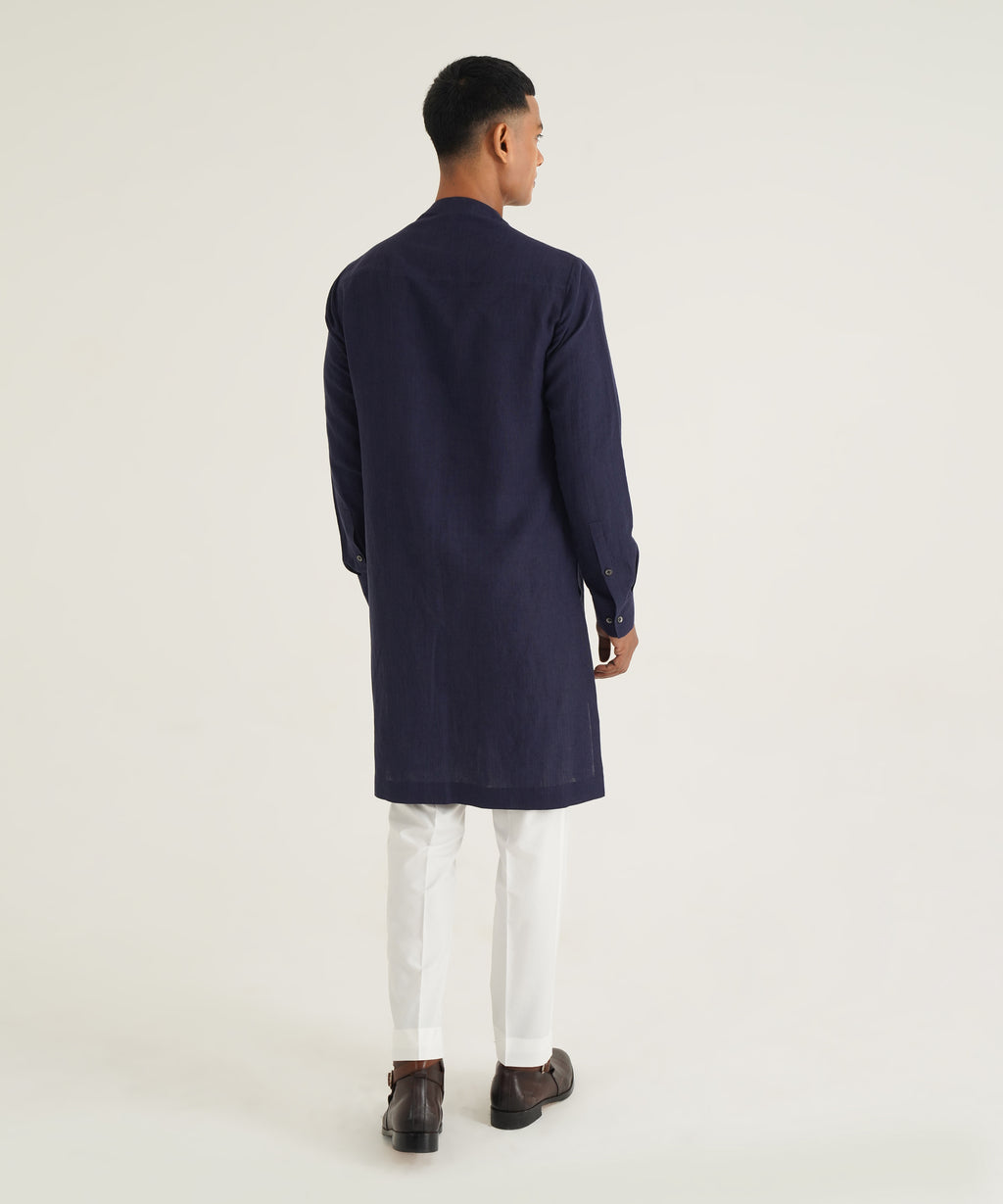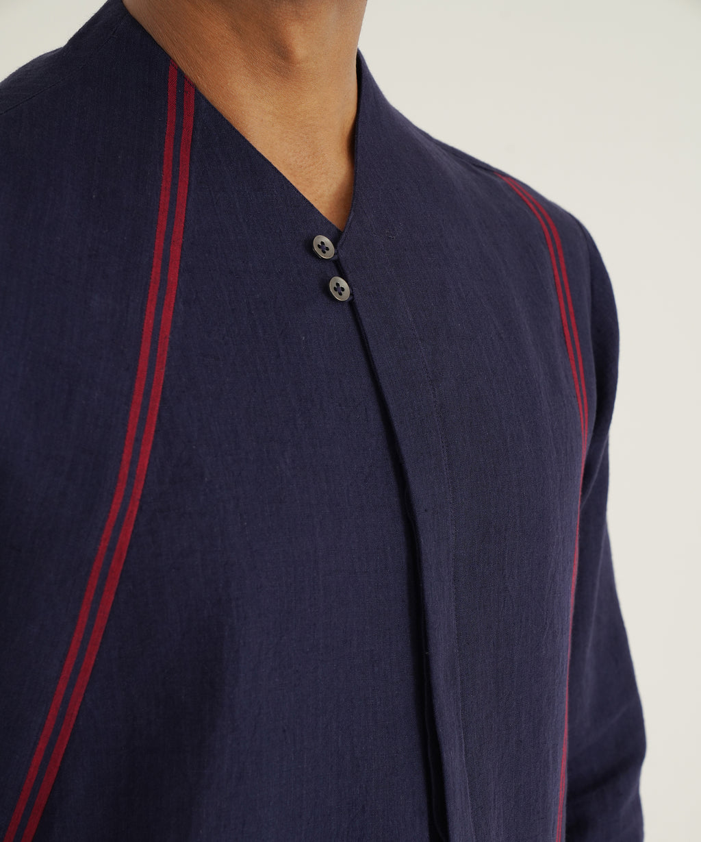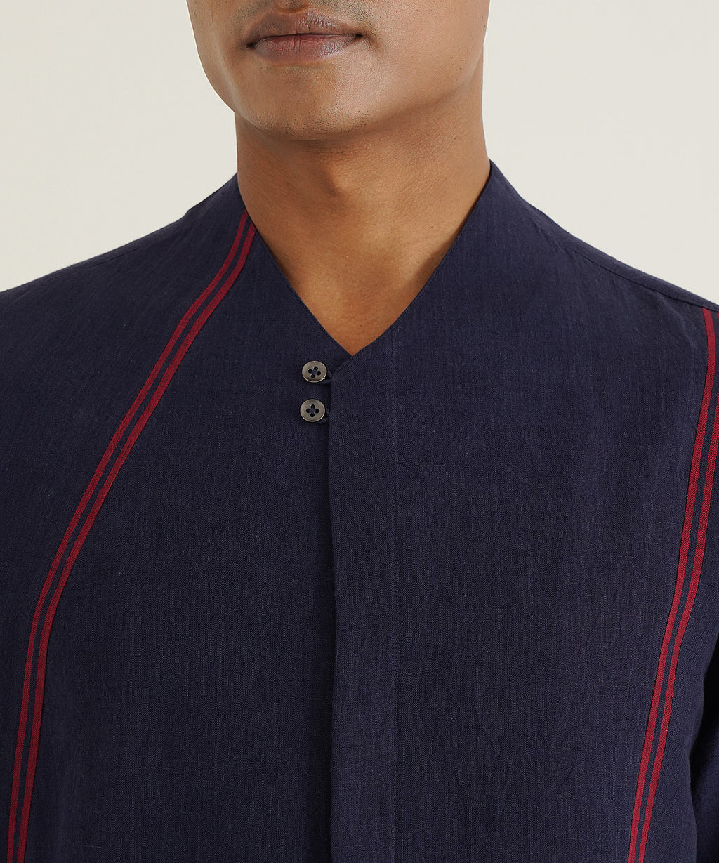Handloom Cotton Kurta With Asymmetric Selvage Detailing Paired With Pant Style Pajama.