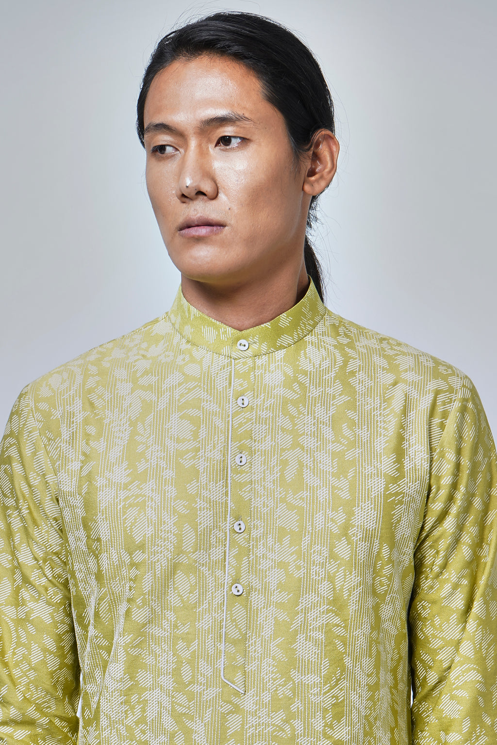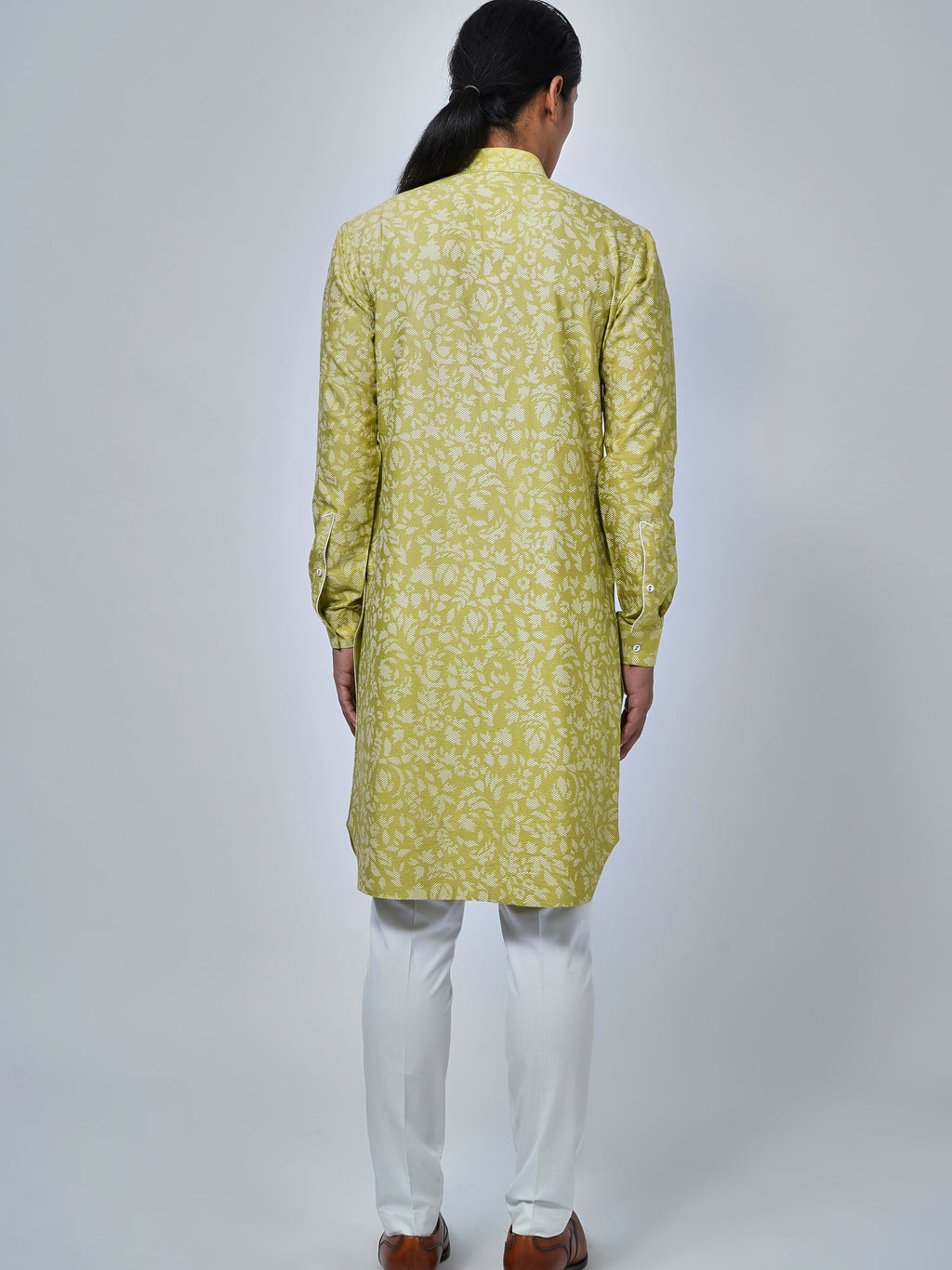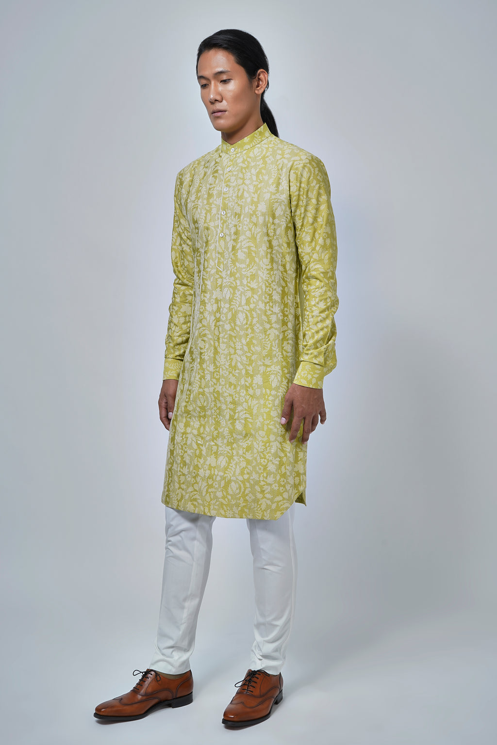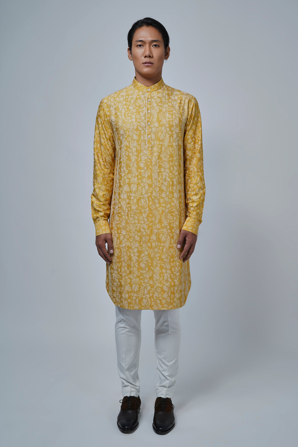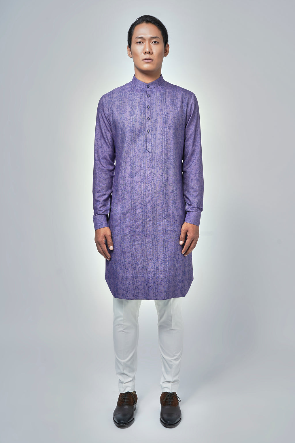 Printed Kurta Set in Cotton Silk with Center Placket Paired with Pant Cut Pyjama