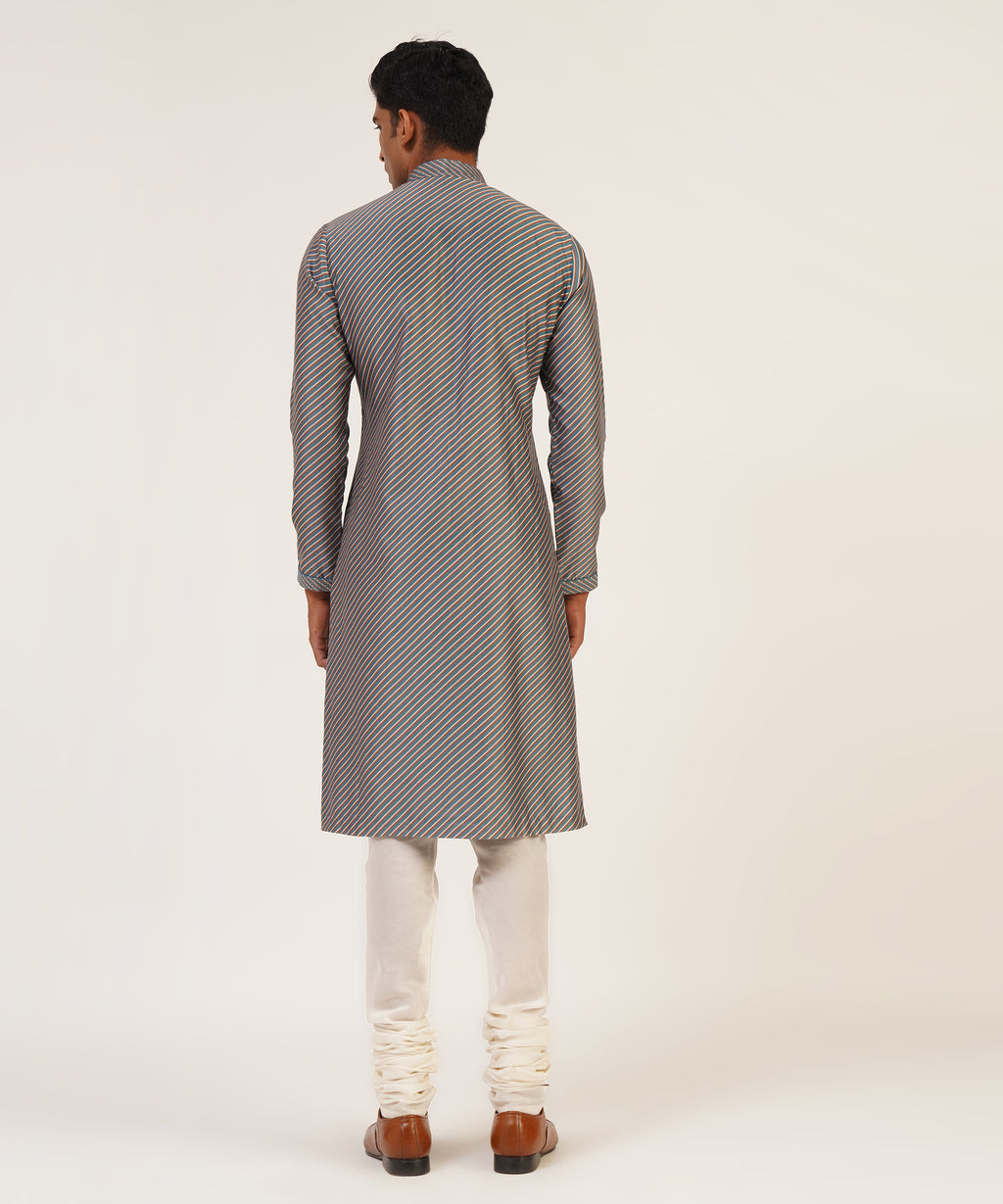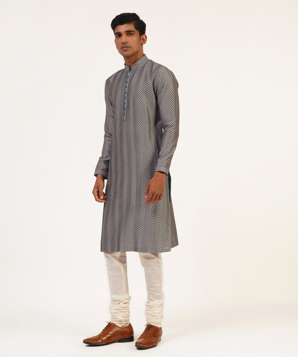 Cotton Silk Chanderi Diagonal Line Printed Kurta With Pintucks And Loop Buttons Paired With Churidar