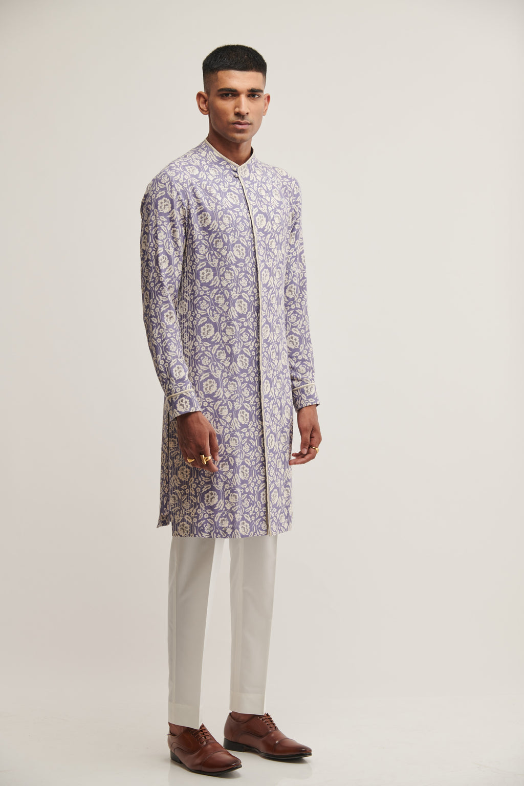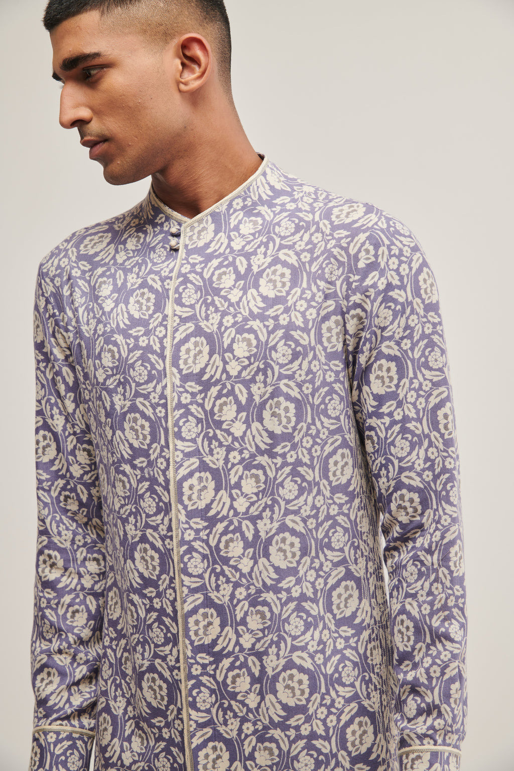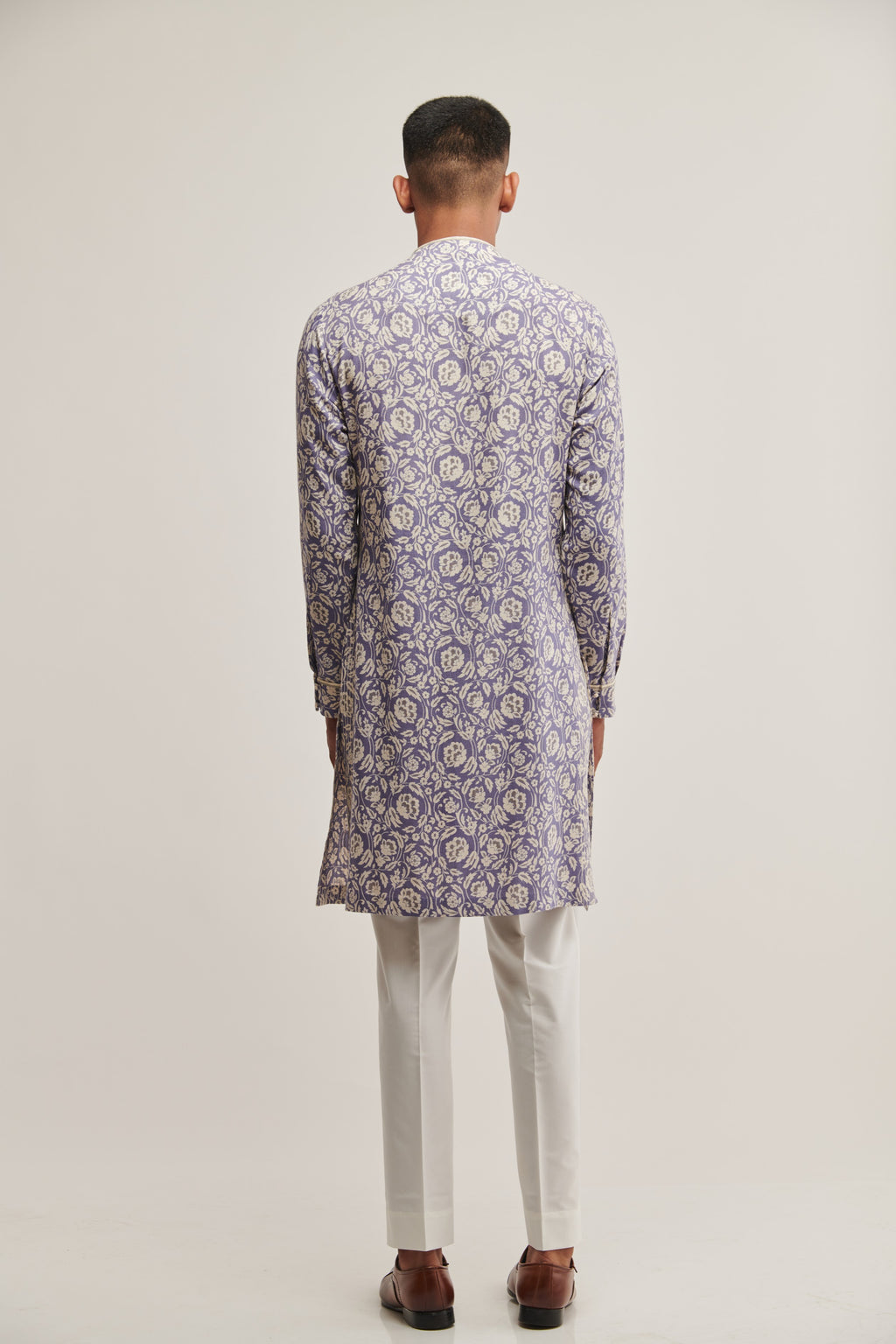 Cotton Silk Centre Opening Printed Kurta With Loop Button And Edge Detailing Paired With Pant Cut Pyjama