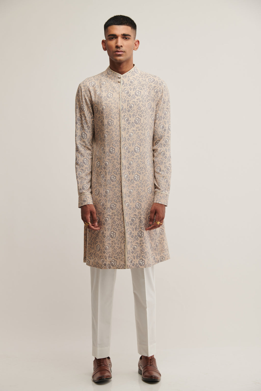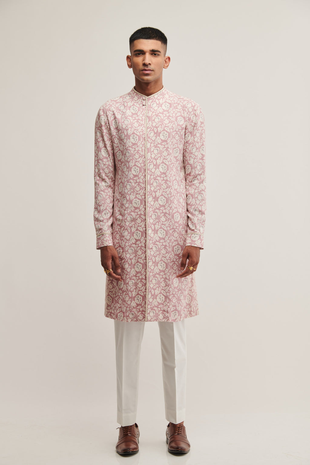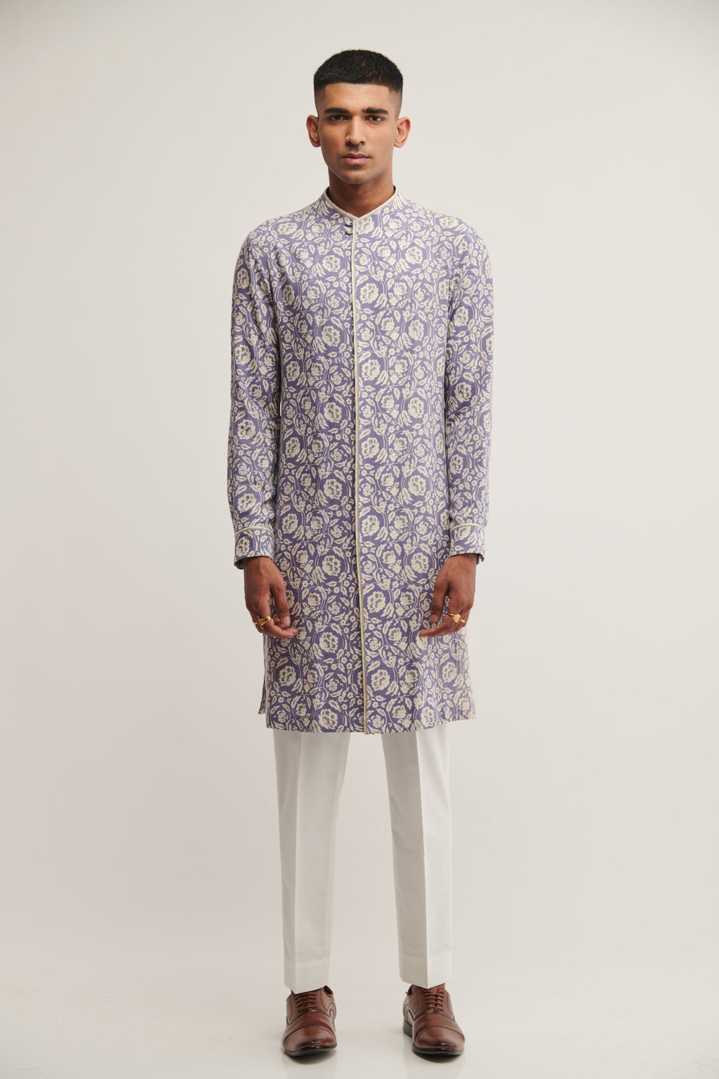 Cotton Silk Centre Opening Printed Kurta With Loop Button And Edge Detailing Paired With Pant Cut Pyjama