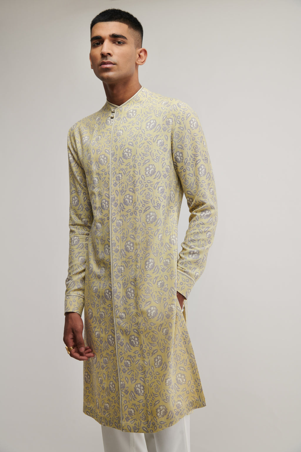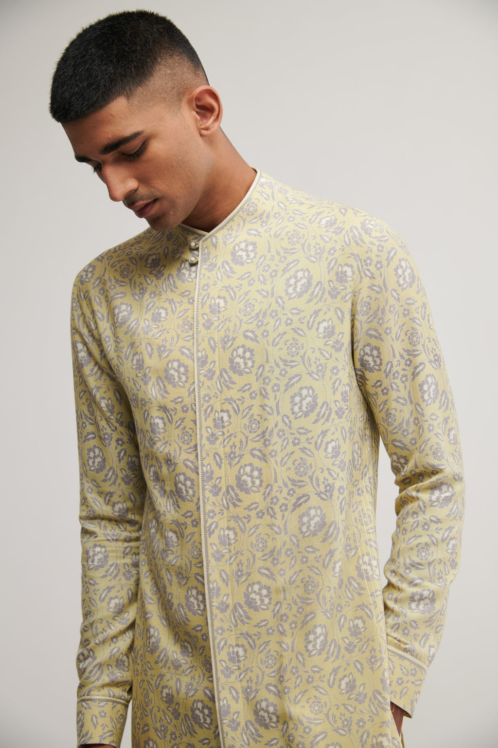 Cotton Silk Centre Opening Printed Kurta With Loop Button And Edge Detailing Paired With Pant Cut Pyjama