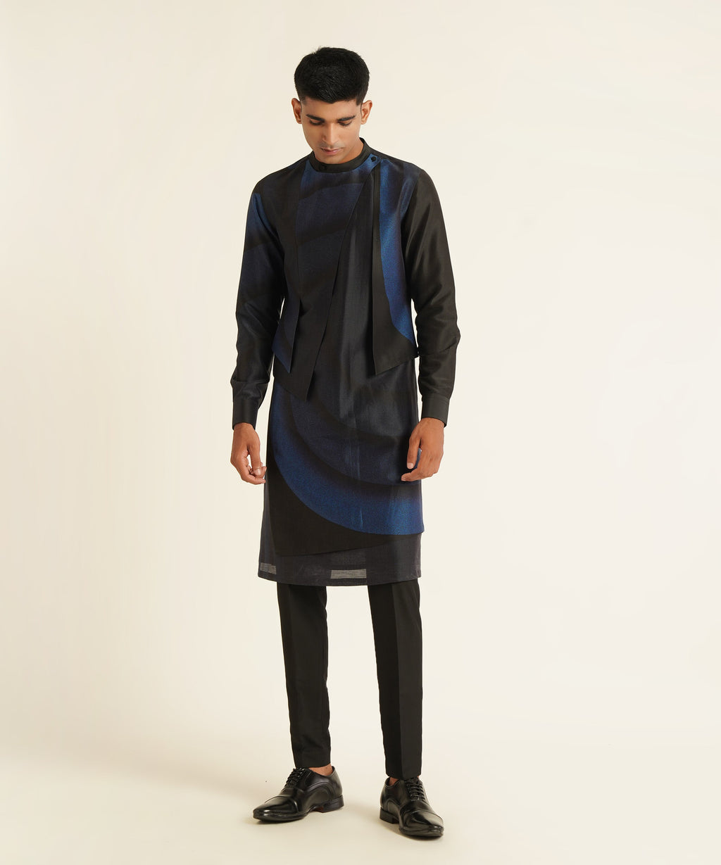 Gradient Curved Lines Printed Chanderi Kurta With Multiple Asymmetric Layers Paired With Pant Cut Pyjama.