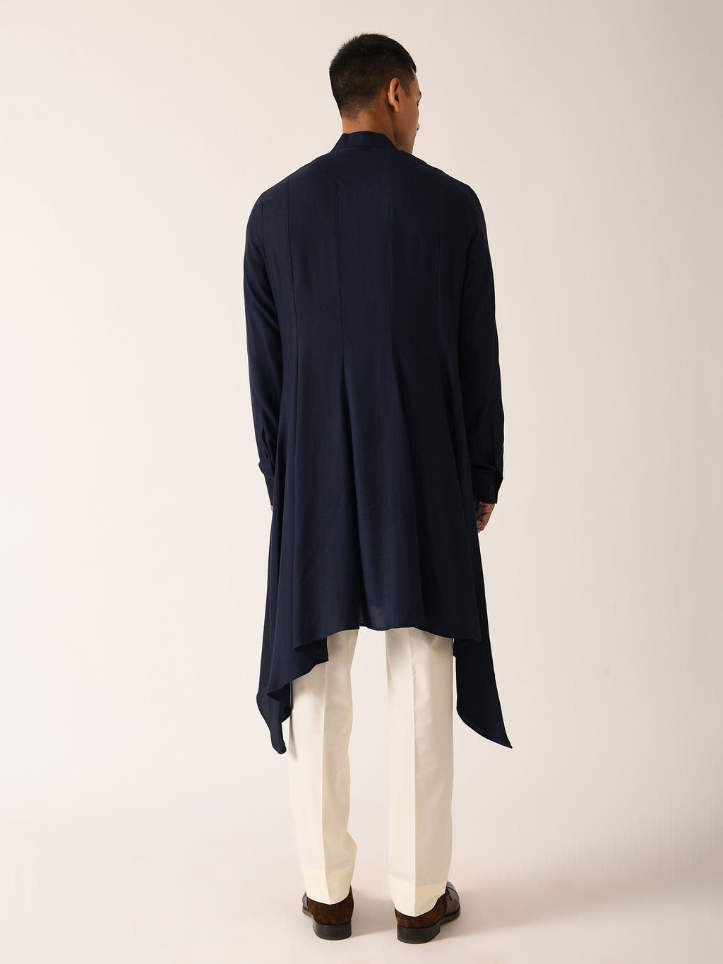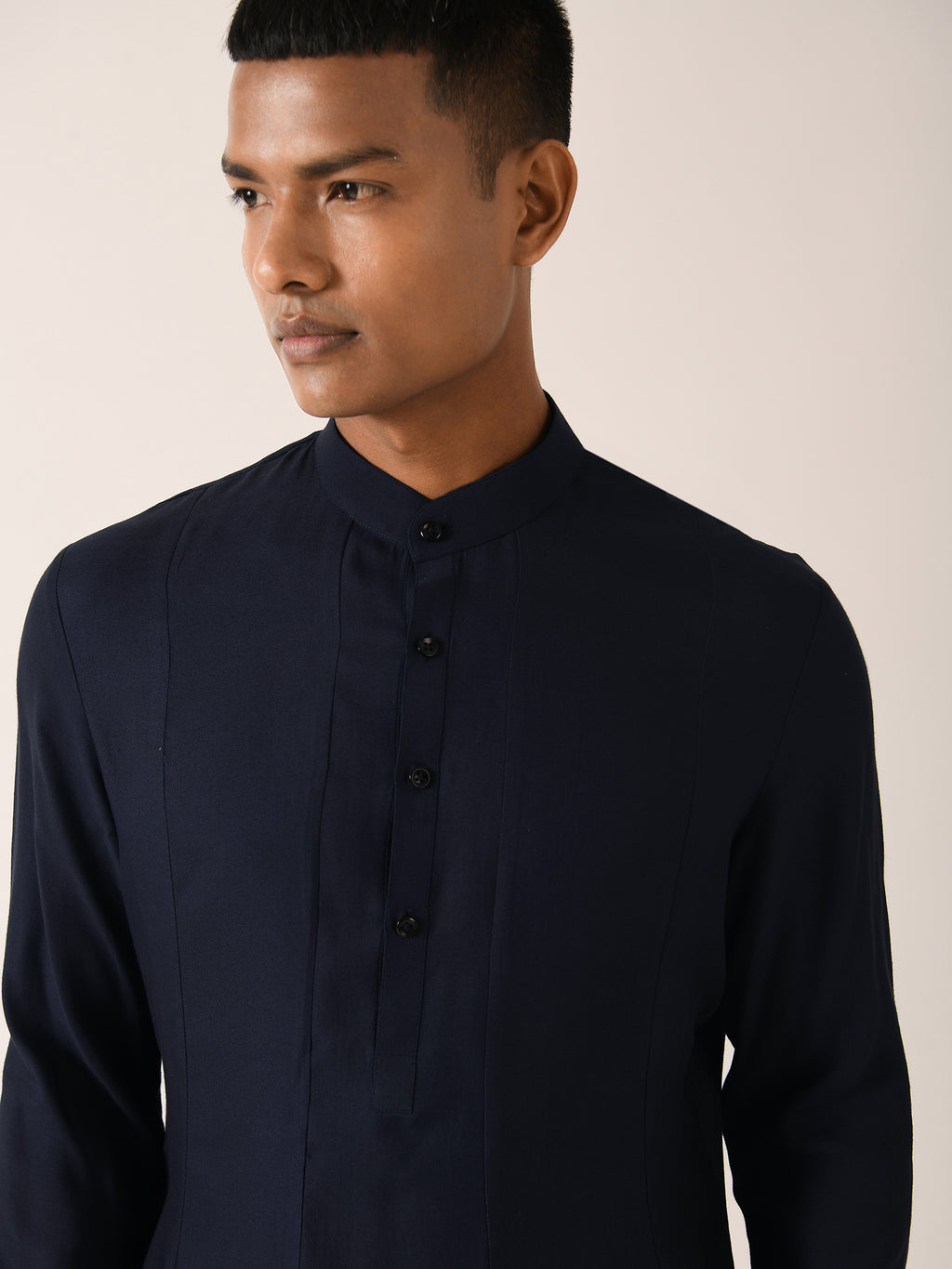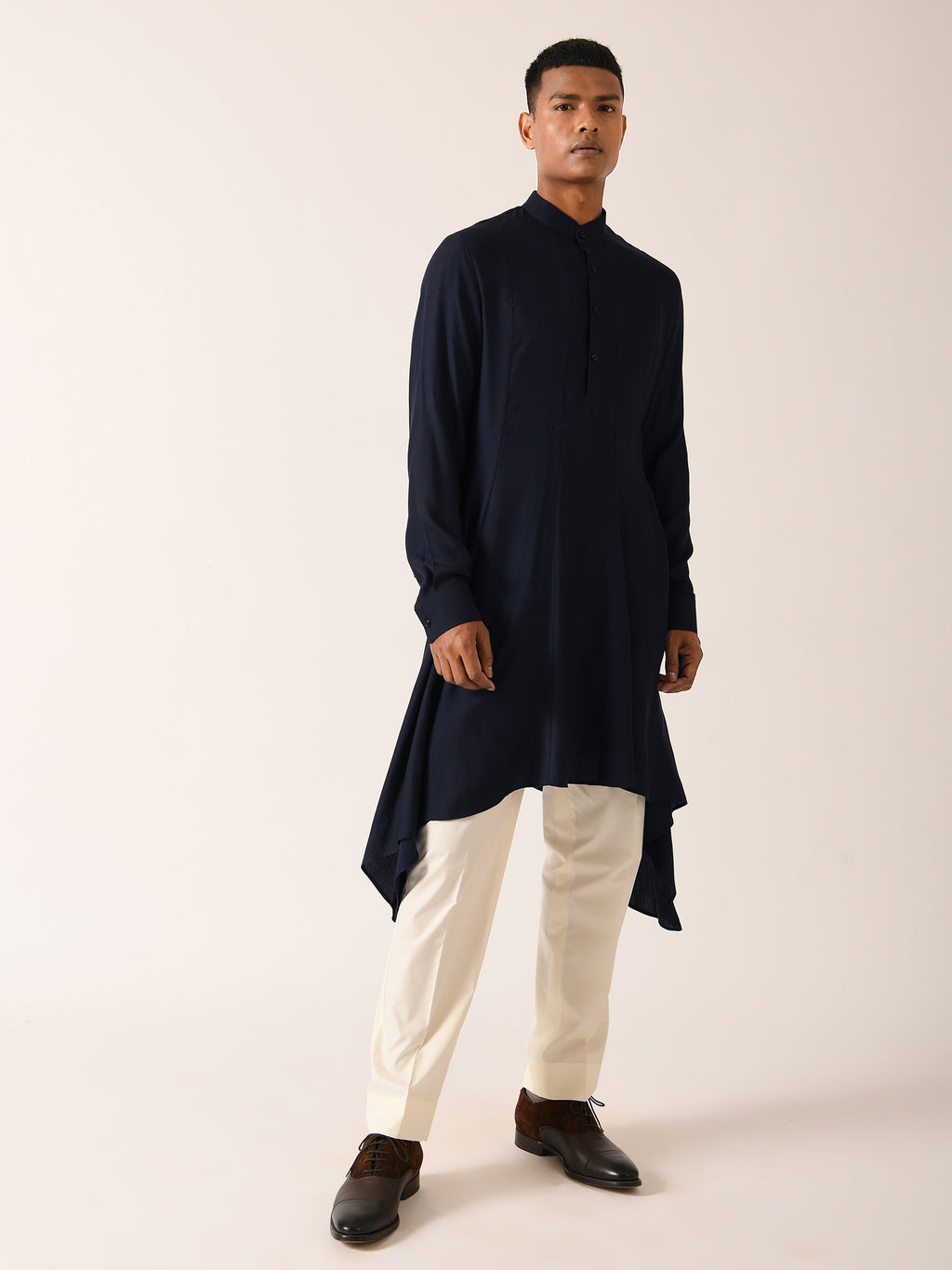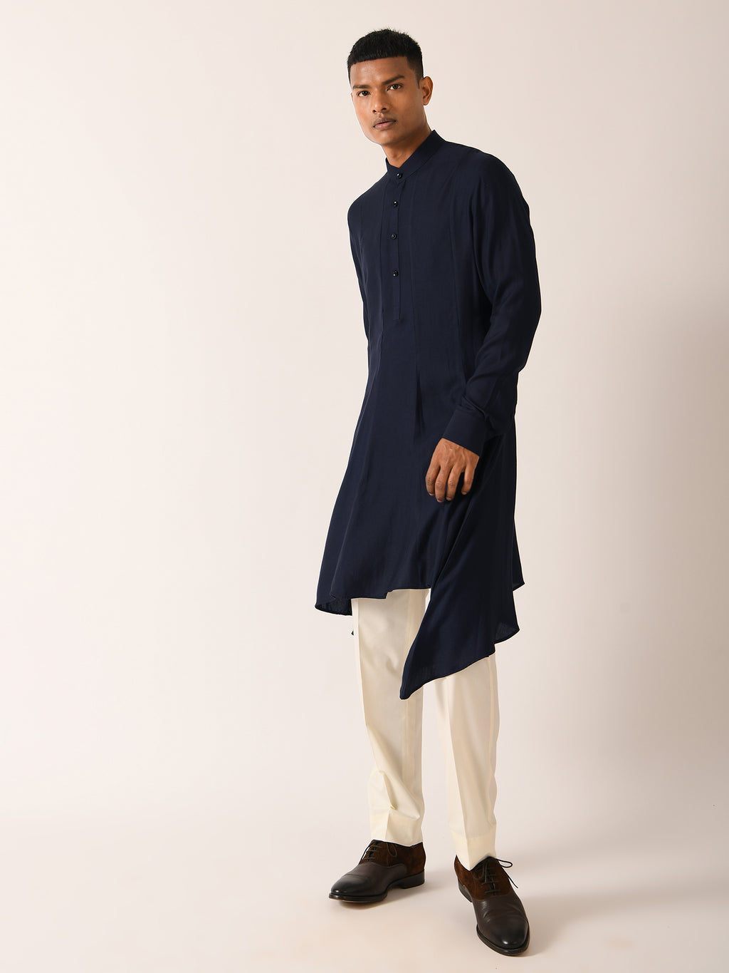 Flared Panelled Kurta in Cotton Satin Paired with Pant Cut Pyjama