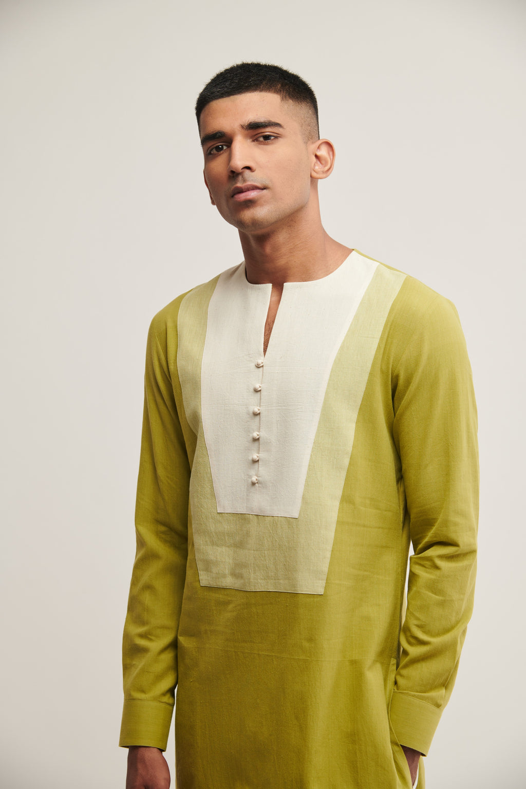 Handloom Cotton Double Yoke Kurta With Round Neck And Loop Buttons