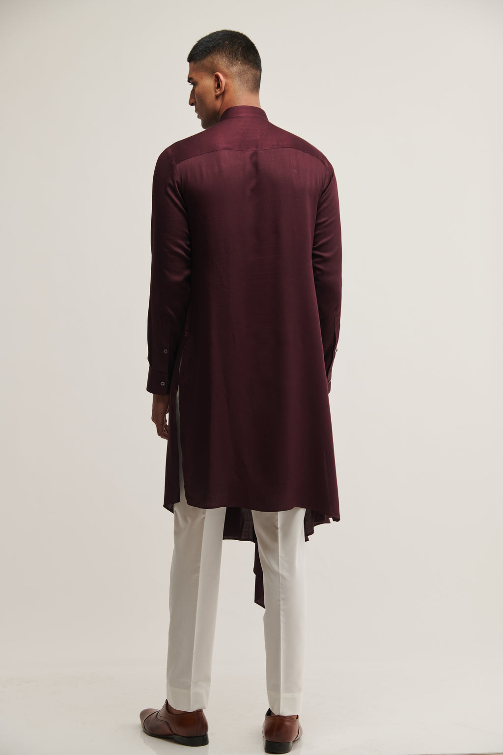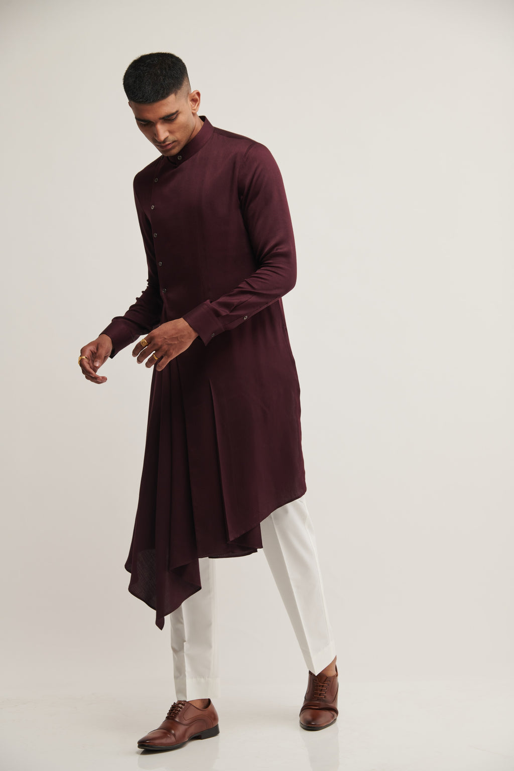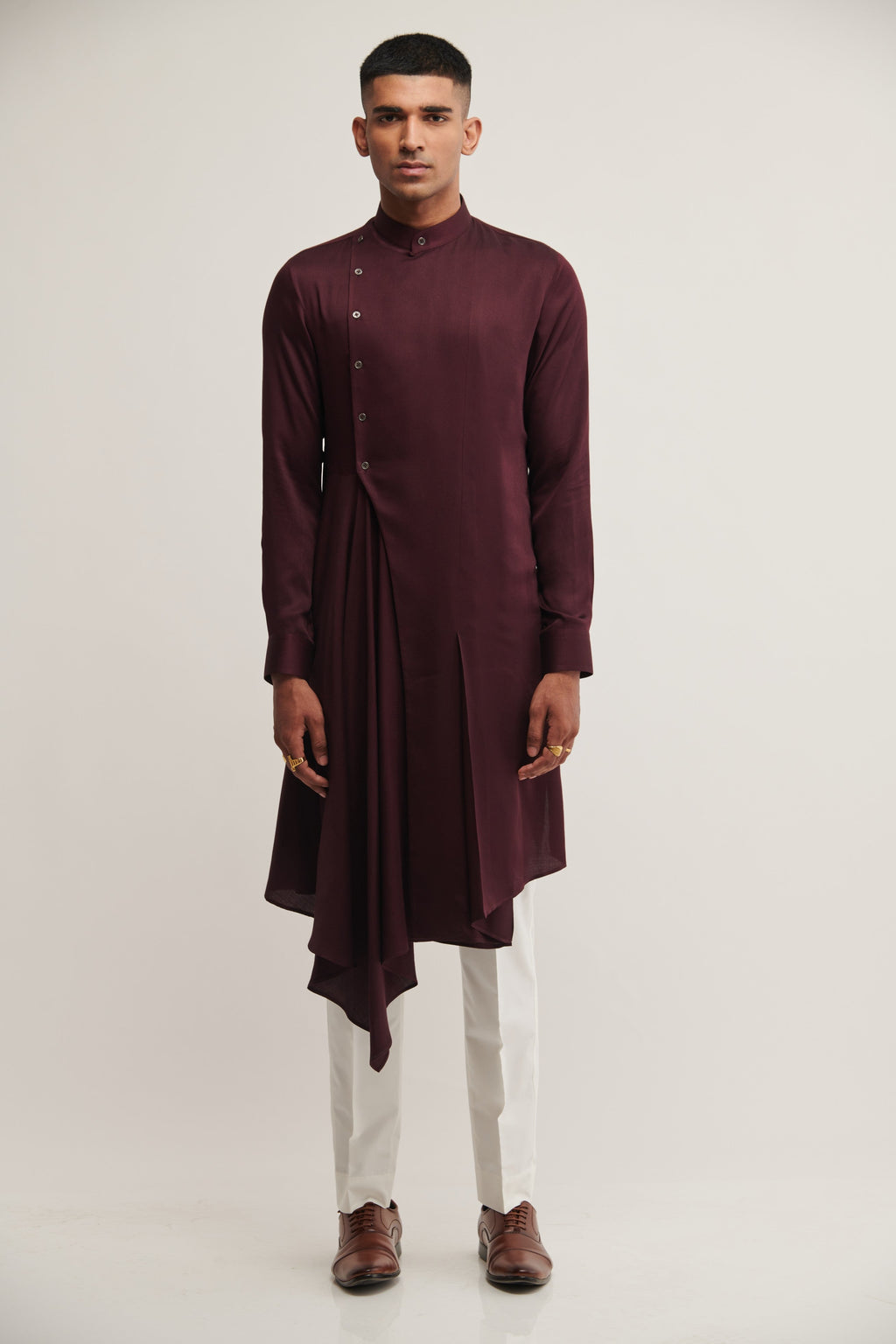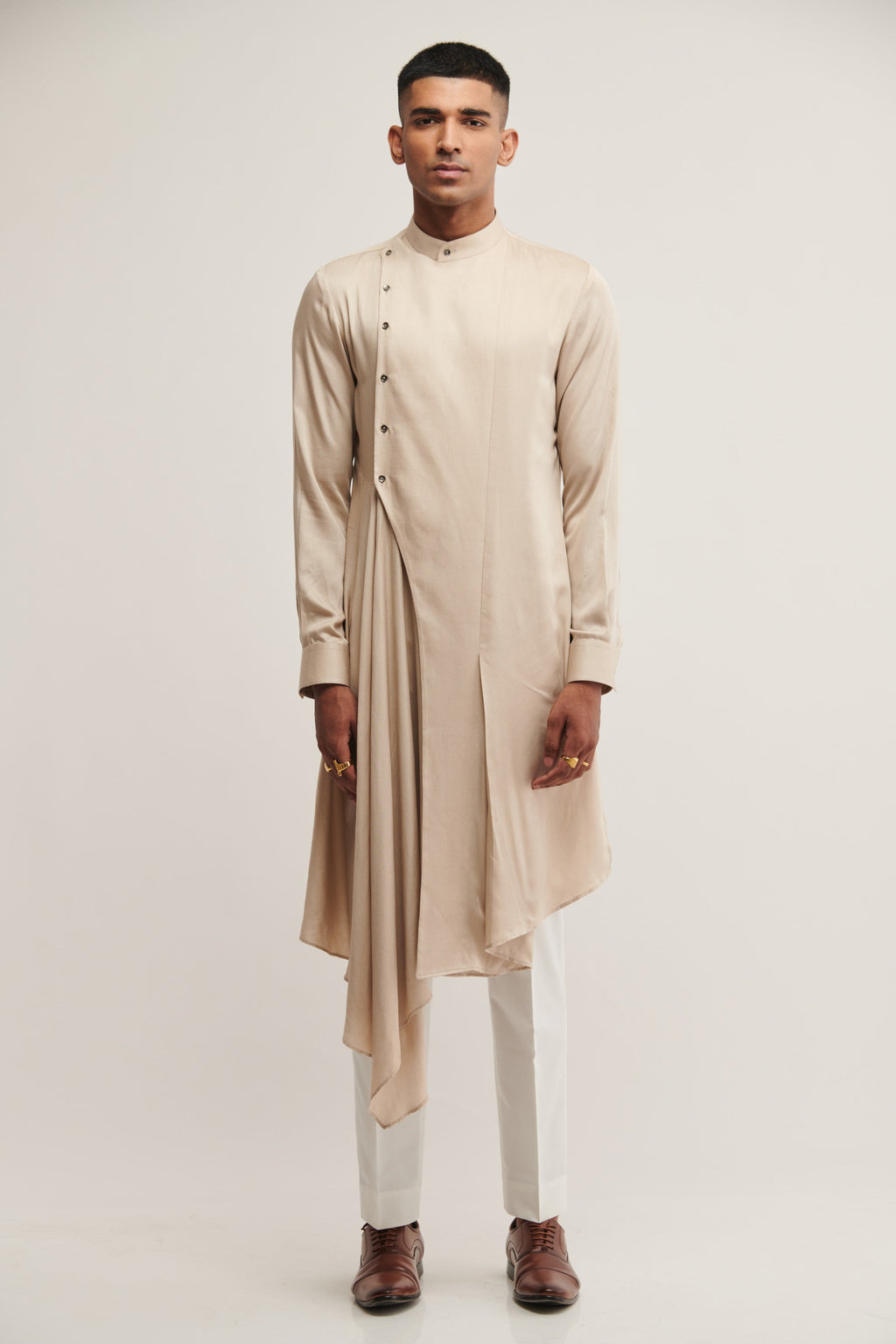 Cotton Satin Draped Kurta With Side Opening Paired With Pant Style Pyjama