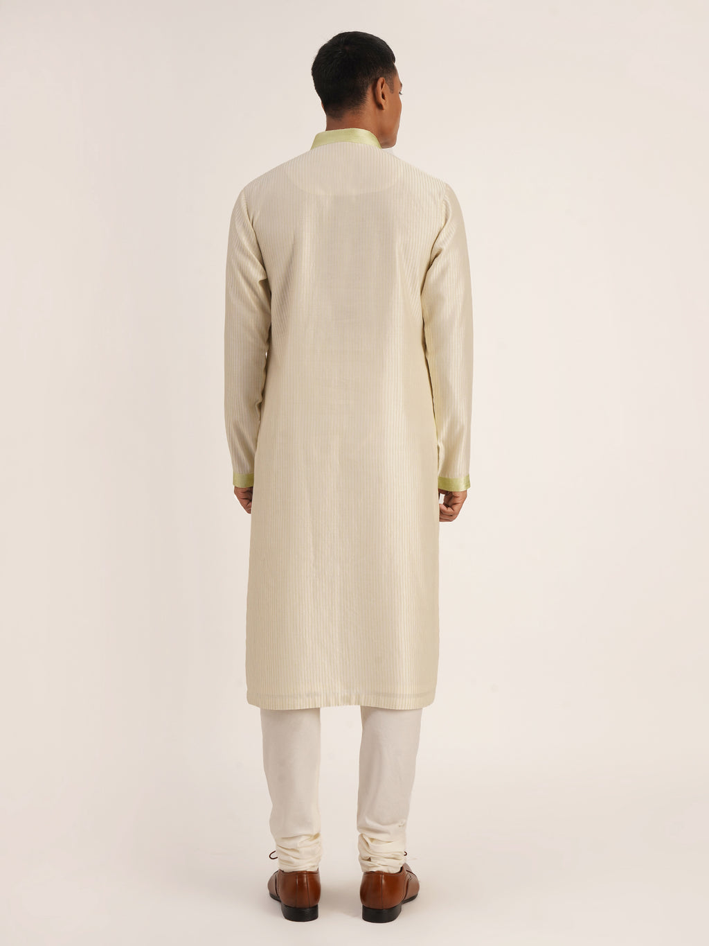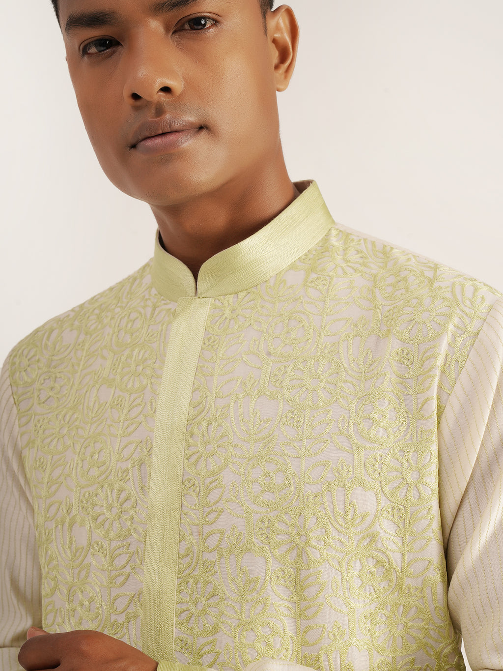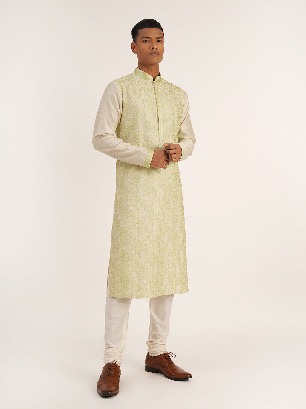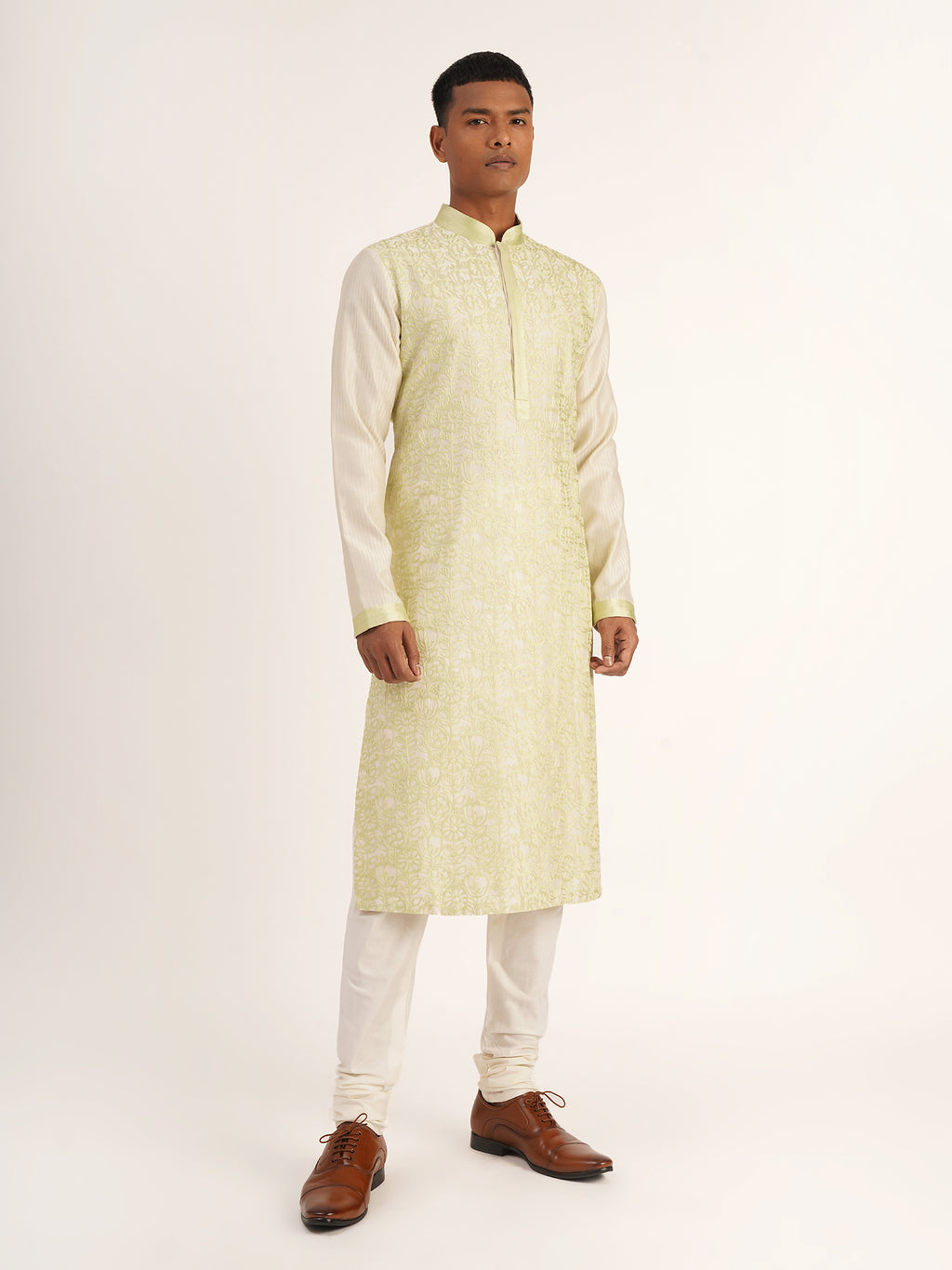 Cotton Silk Chanderi Kurta with over all thread embroidery paired with churidar