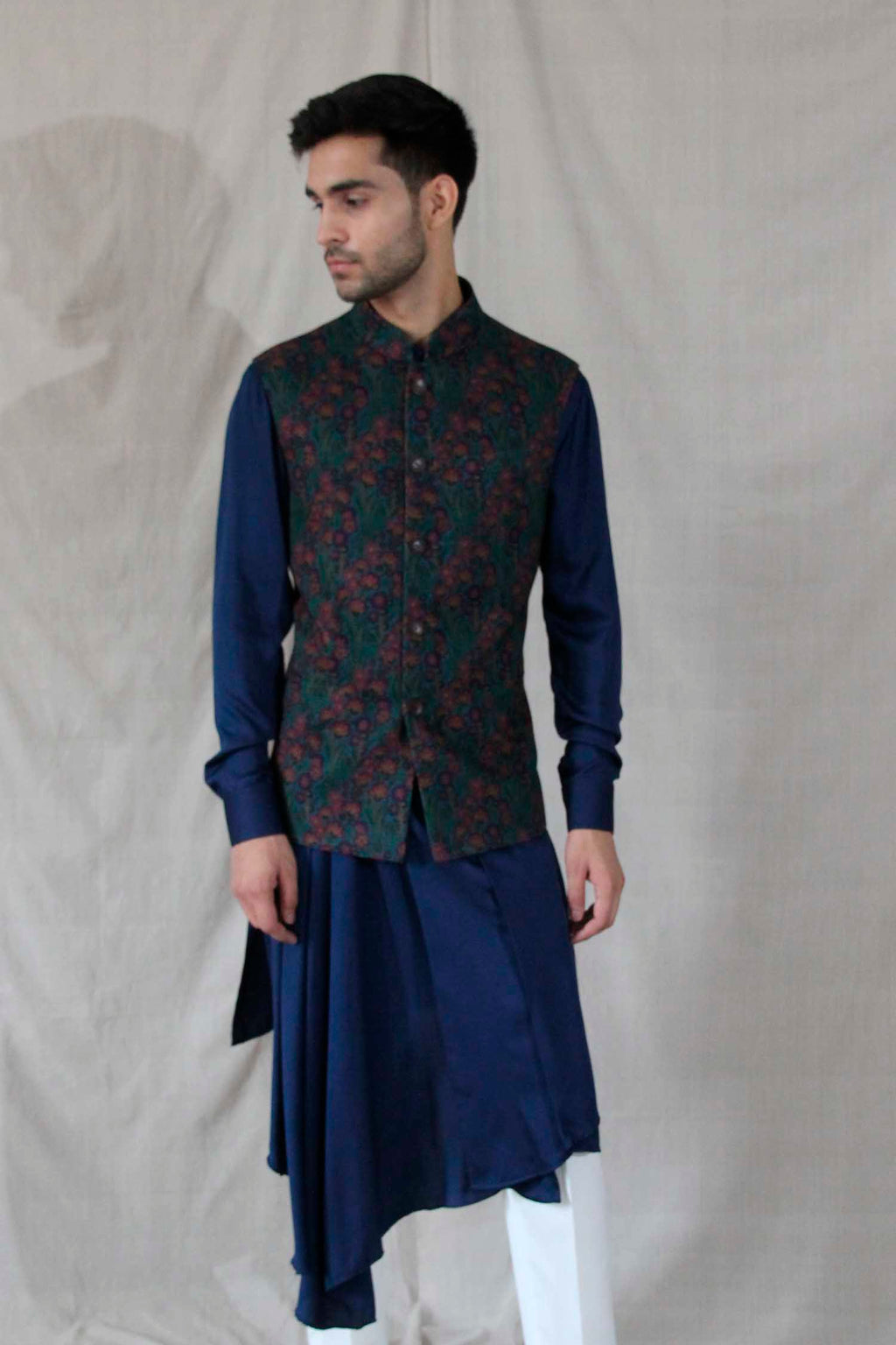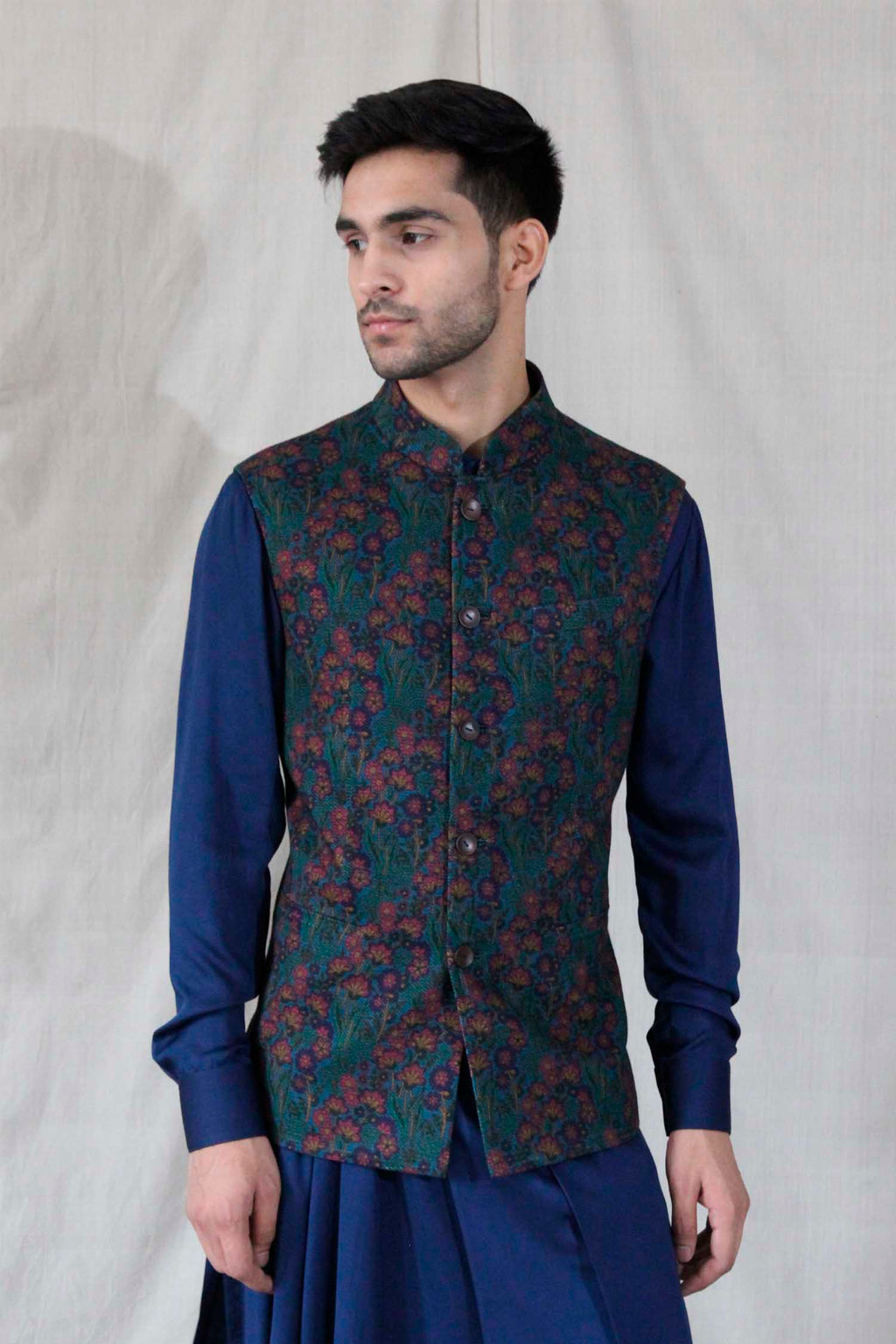 A classic cut Printed Jawahar Jacket with Two Concealed Pockets.