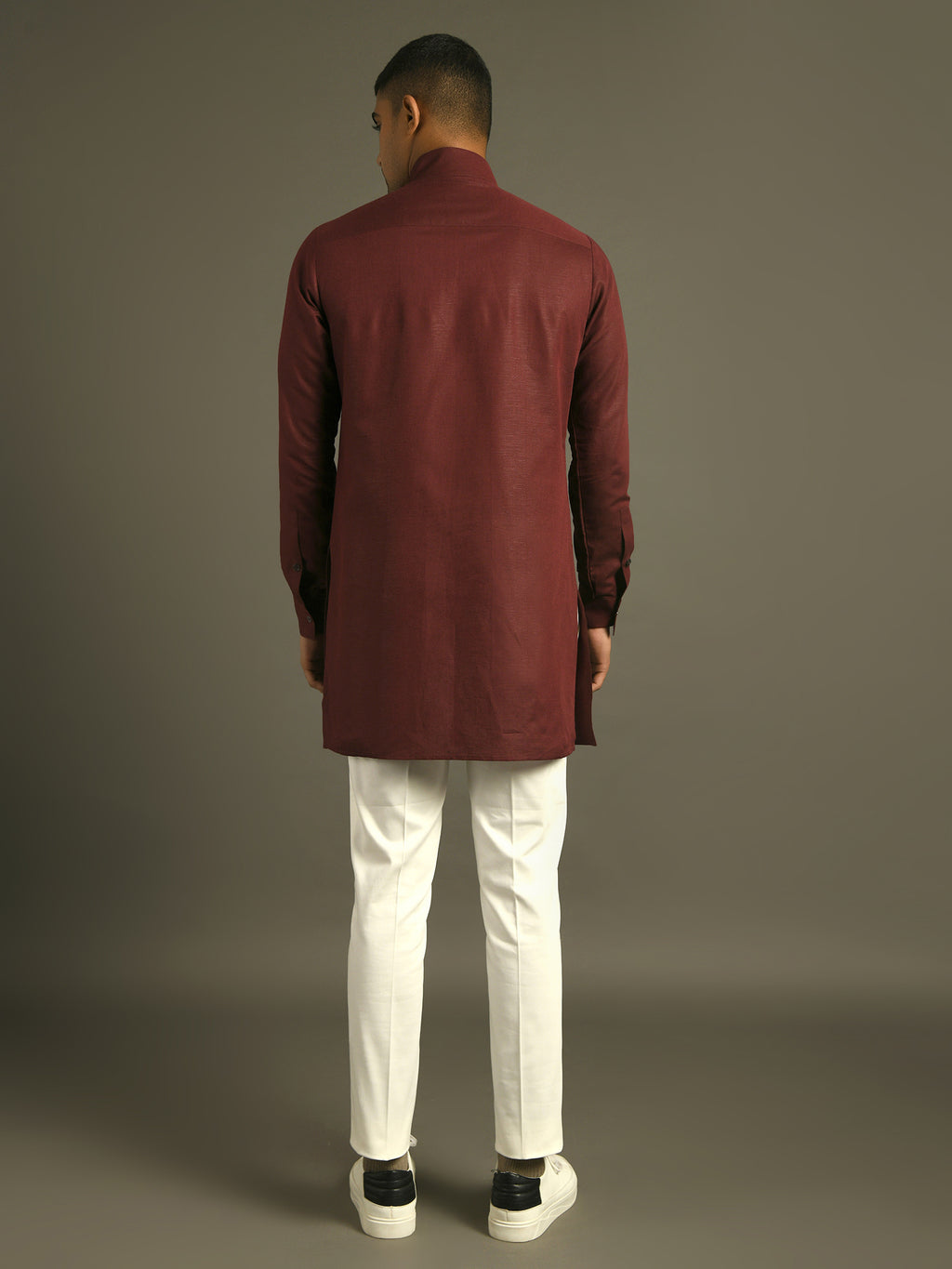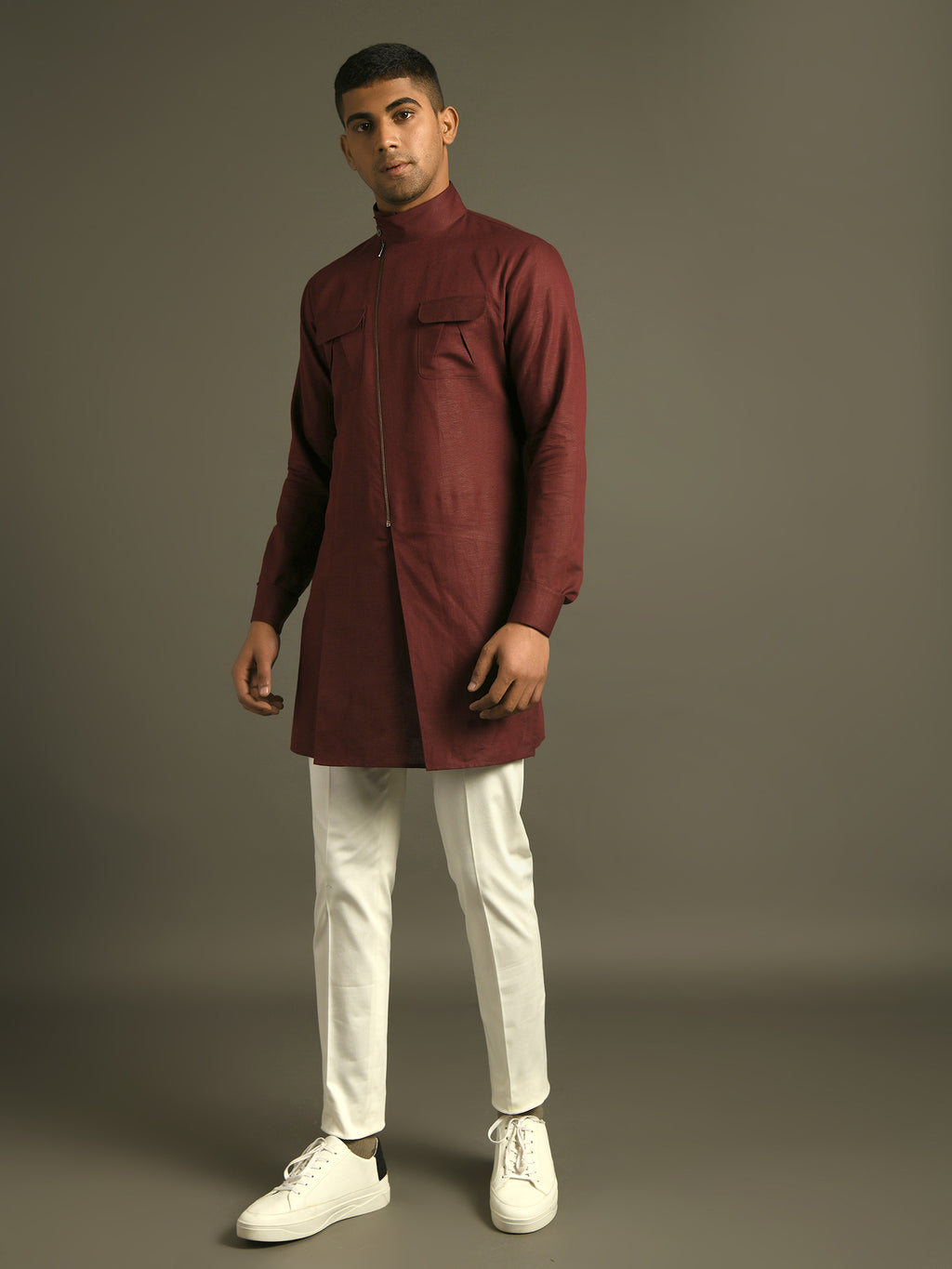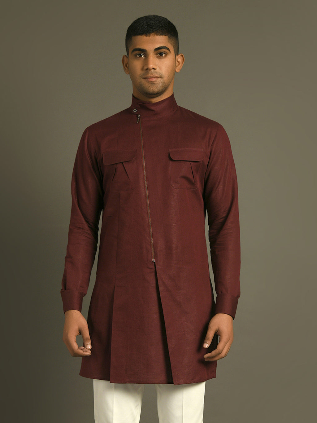 Casual Short Kurta in fine quality Cotton Linen with Asymmetric Zipper Opening perfect for semi-formal and evening wear.