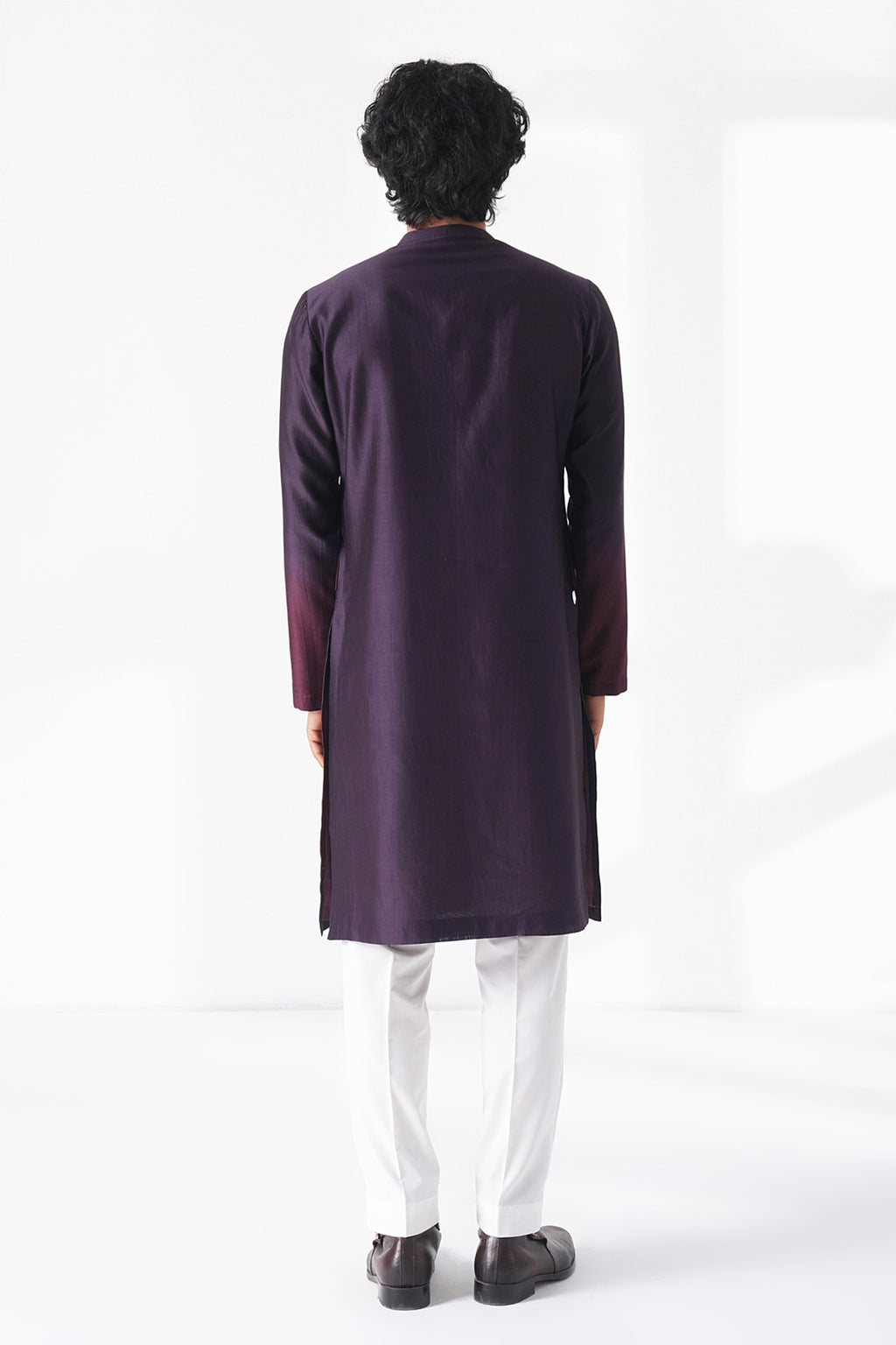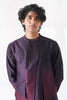 Contemporary chanderi kurta set featuring a striking brown ombre effect with an asymmetrical layered overlay and clean, minimalist cut offering modern twist with artistic flair. It is paird with cream pant style pyjama.