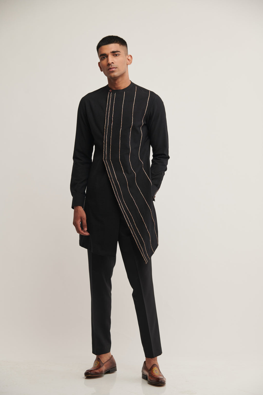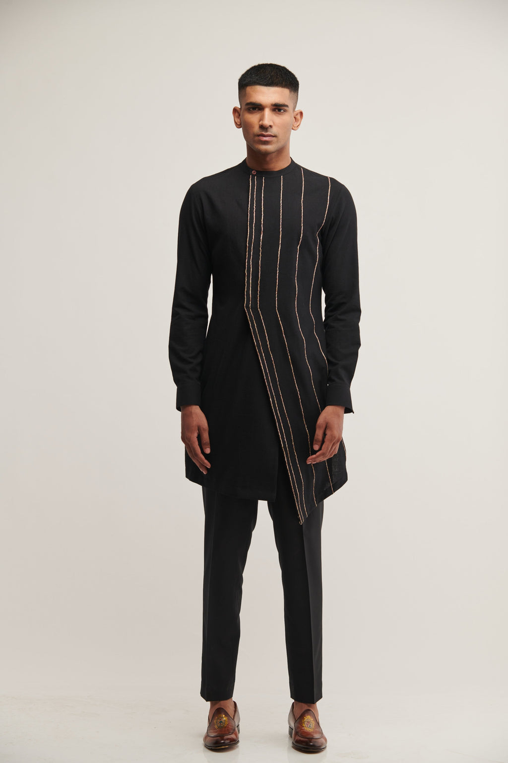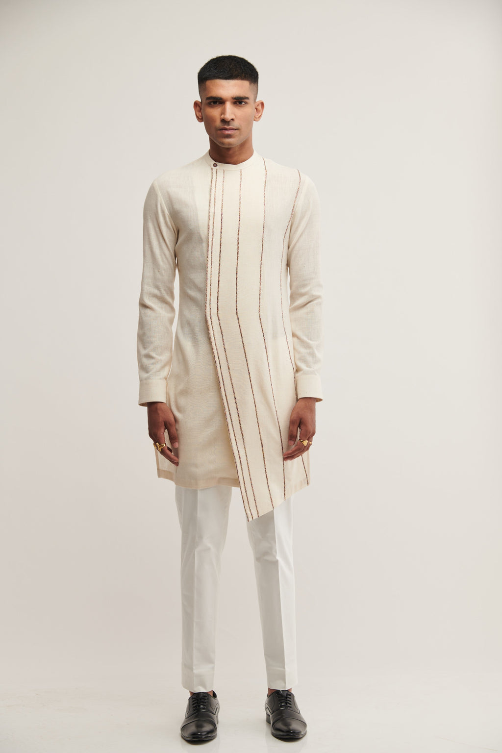 Handloom Cotton Kurta With Sustainable Thread Embroidery Paired With Pant Cut Pyjama