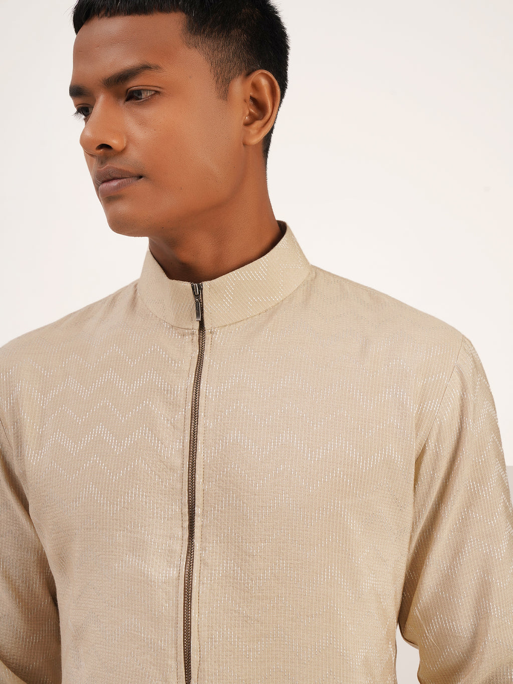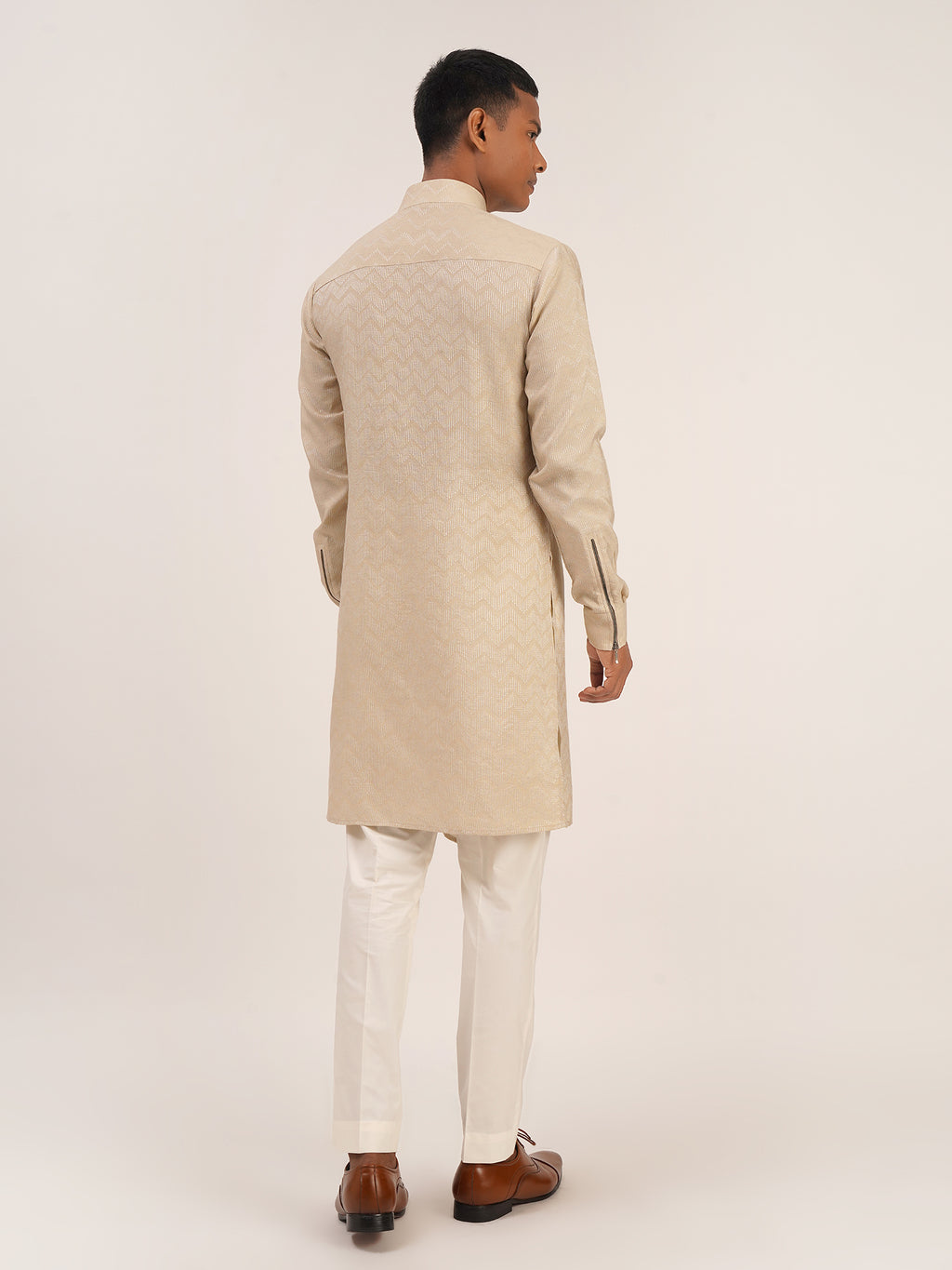 Cotton Silk Kurta With Zig Zag Thread Pattern With Centre Zipper Paired With Pant Cut Pyjama
